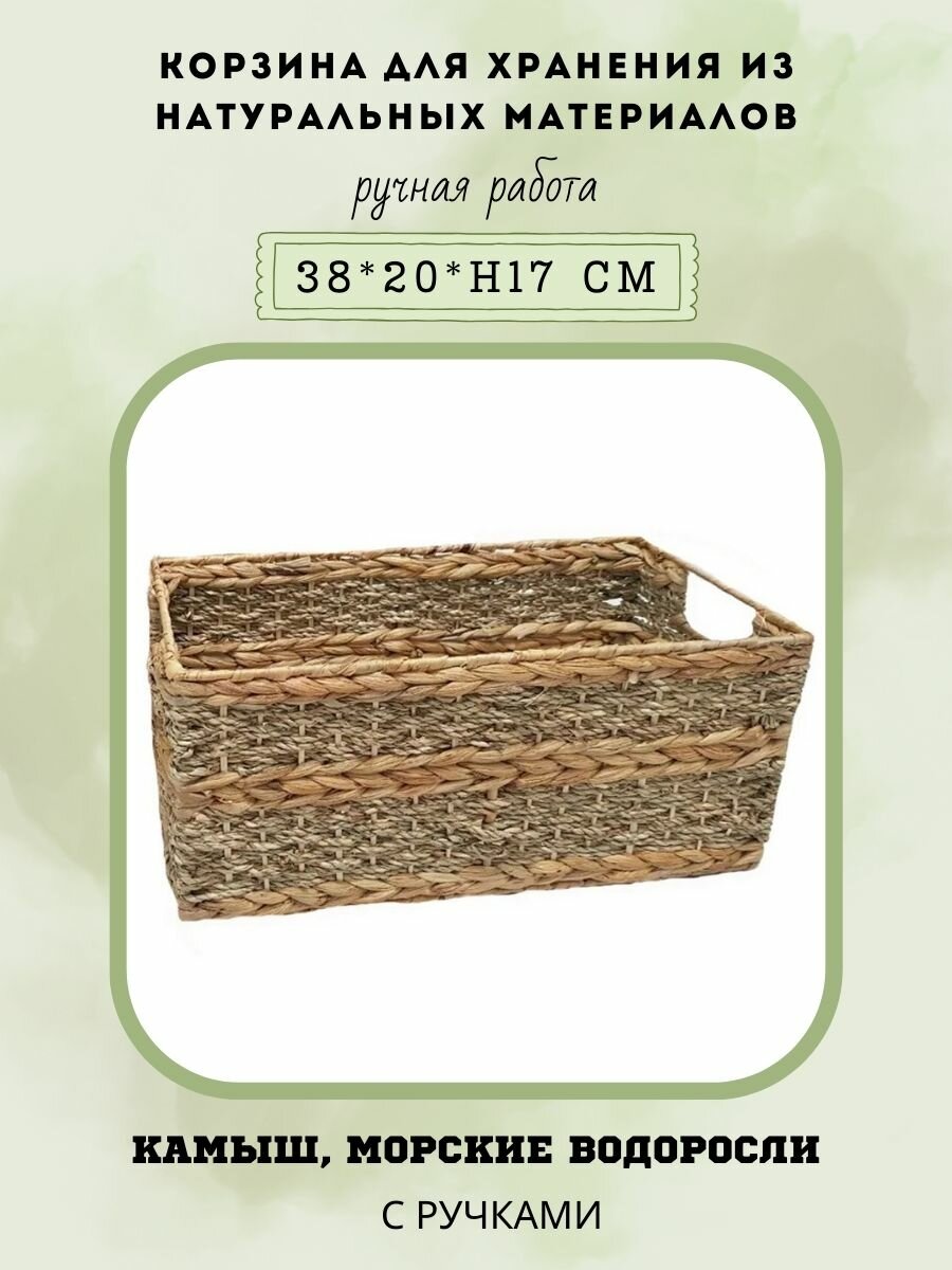 Корзина плетеная универсальная с ручками (морские водоросли, металл каркас), 38*20*Н17 см, ручная работа информация: