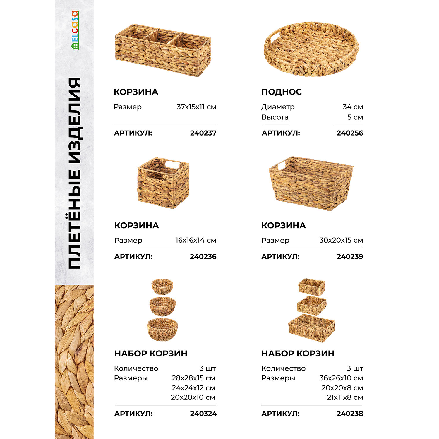 10 цен на Корзинка плетеная 30х20х15 см EL Casa с ручками, водный гиацинт