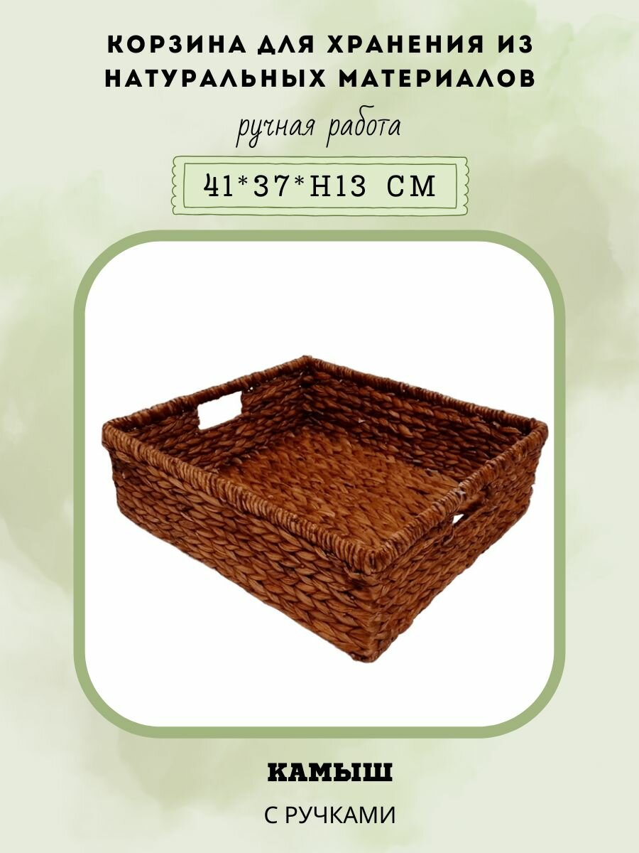 Отзывы на Корзина-лоток плетеная с ручками (камыш, металл каркас), 41*37*13 см, ручная работа