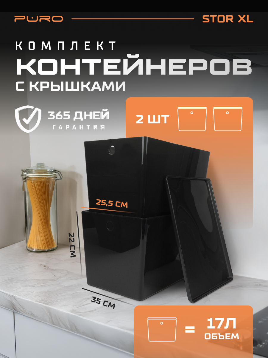 Комплект контейнеров с крышкой для хранения PURO STOR XL, 2шт, графитовые информация: