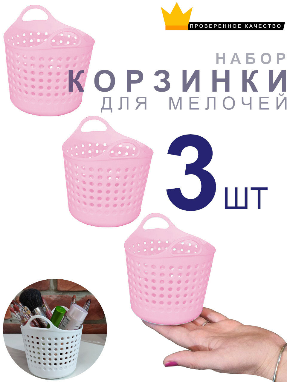 10 цен на Набор корзин для хранения мелочей с ручками пластиковых 11*11см цвет розовый
