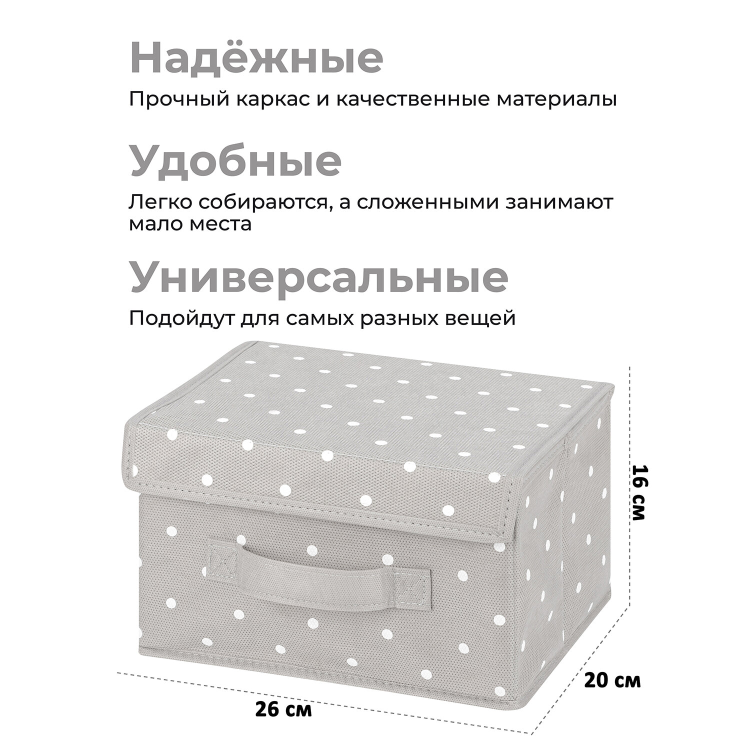 Короб-кофр, органайзер, складной для хранения 26х20х16 см EL Casa Серый горошек с ручкой, с крышкой на липучке информация: