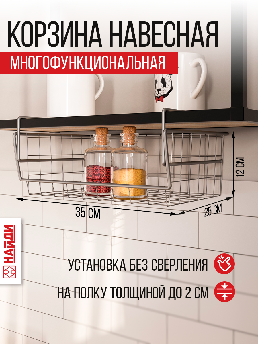10 цен на Подвесная корзина, полка сетчатая, кухонный органайзер 35*25*12 см. Металлик серебристый