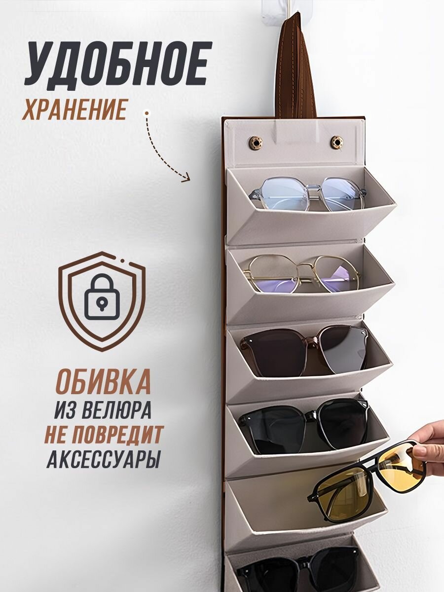 Отзывы на Органайзер для хранения очков из экокожи / 6 отделений / коричневый