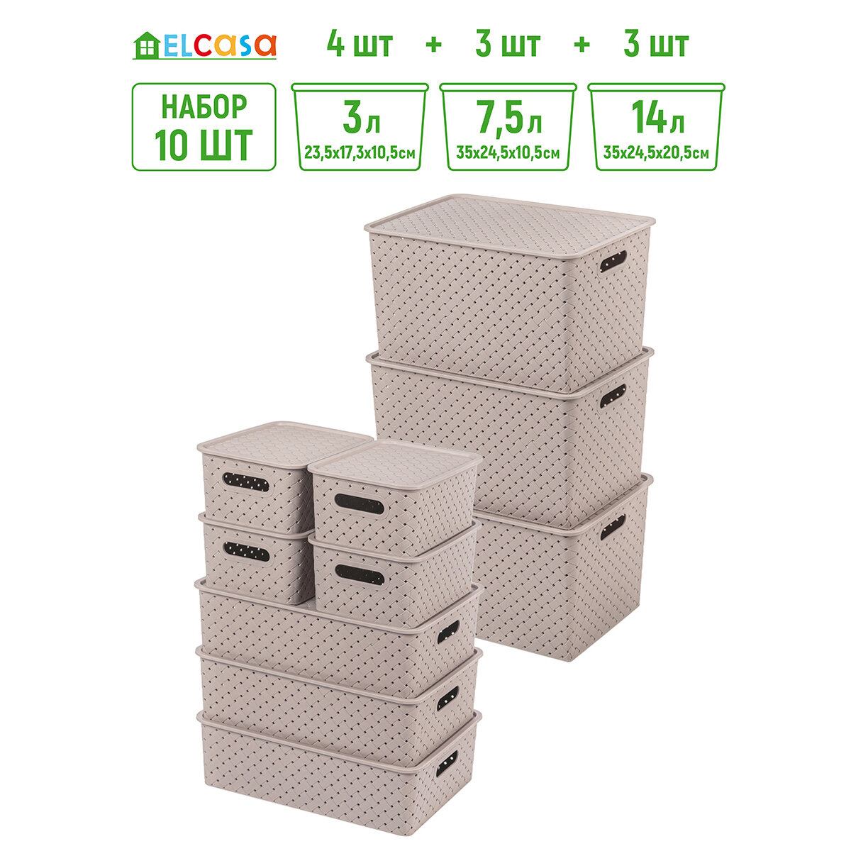 10 цен на Корзинка, коробка для хранения с крышкой 10 шт Береста 3 л (4шт), 7,5 л (3шт), 14 л (3шт) EL Casa цвет мокка, набор