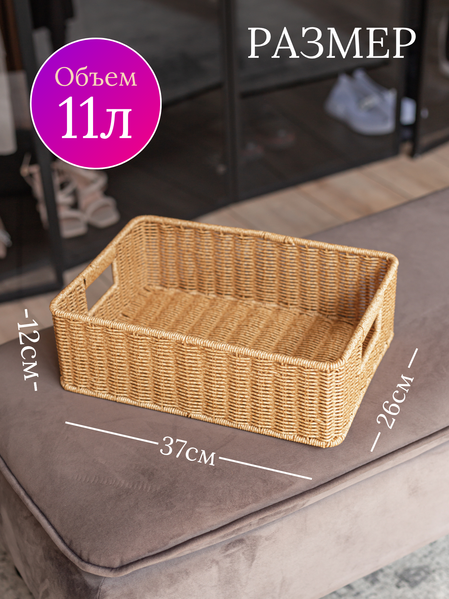 Плетеная корзина с ручками Jimmy's Dome, 37x26x12см, бежевая, металл/полиротанг информация: