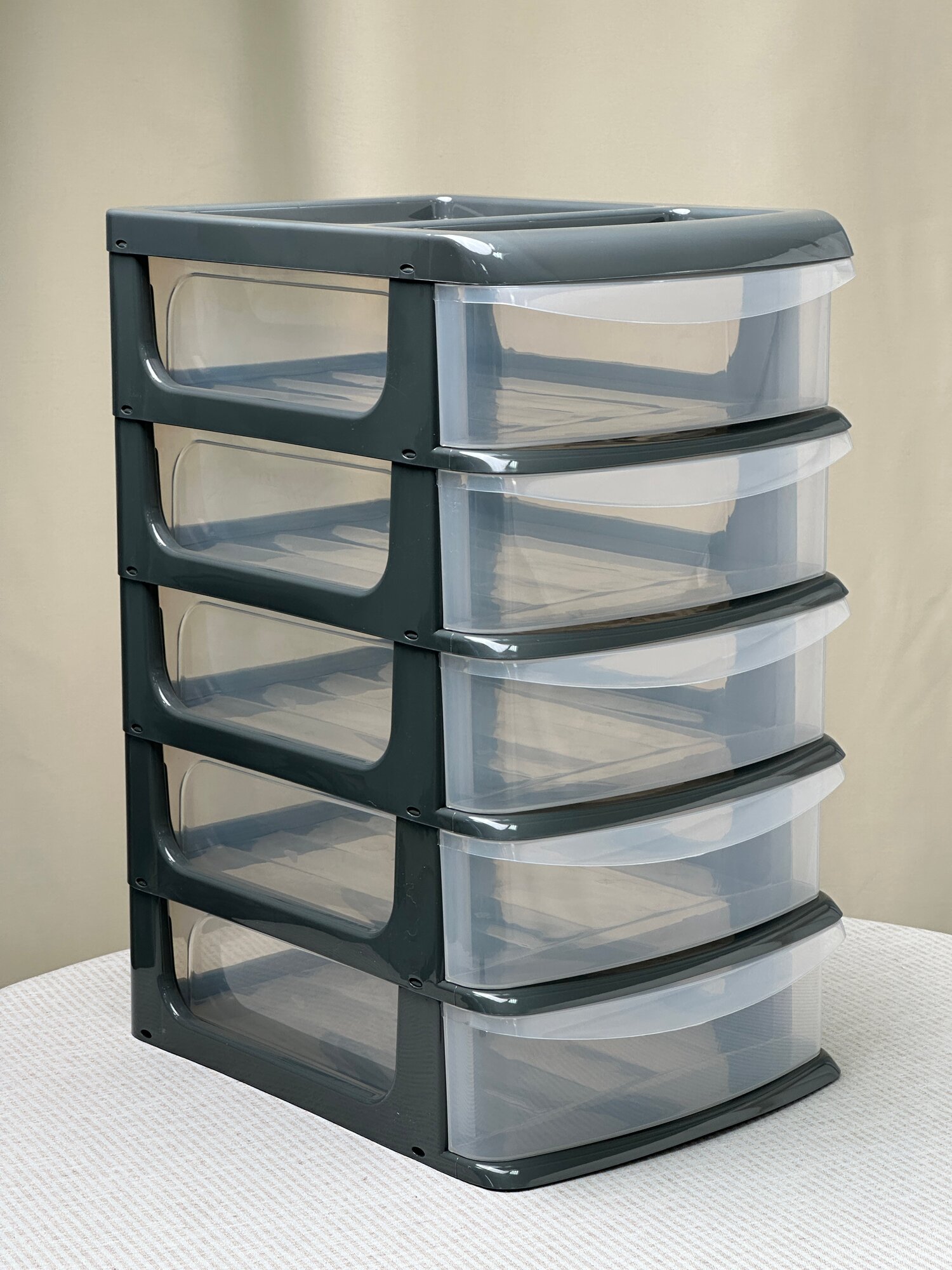 Органайзер для мелочи, косметики, канцелярии "Большой", пластик, прозрачный, 4 ящика, цвет графитовый, 35x25x37 см 1 460 ₽
