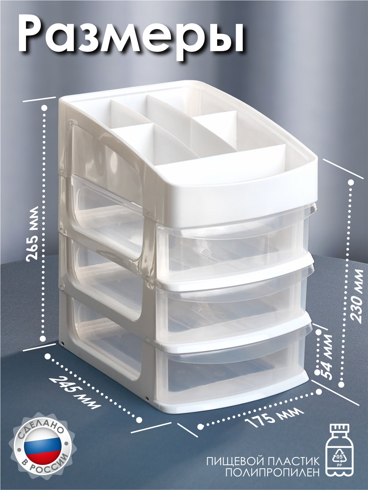 10 цен на Органайзер для косметики, канцелярии, мелочи, лекарств, 3 ящика, пластик 17,5x24,5x26,5 см