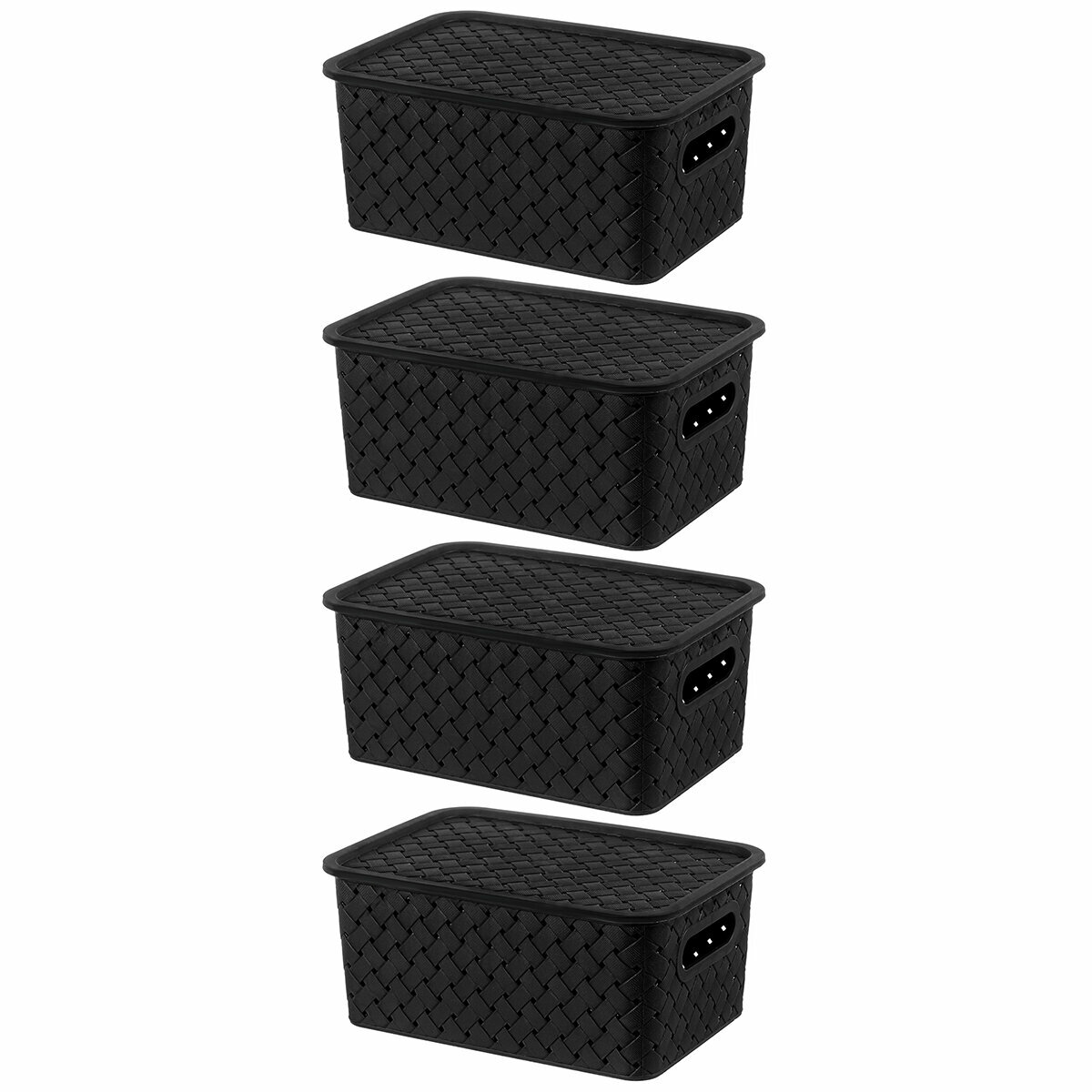 Корзинка, коробка для хранения, с крышкой 4 шт Береста 3 л 23,5х17,3х10,5 см El Casa, цвет черный, набор информация: