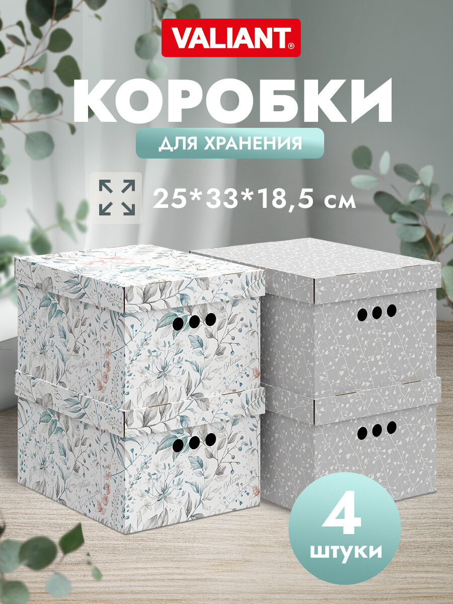 Коробки для хранения вещей, игрушек, обуви, картонные, короб для хранения с крышкой, 25*33*18,5 см набор 4 шт, BOTANIC информация: