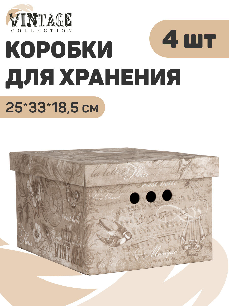 Короб картонный, малый, 25*33*18.5 см, набор 4 шт, VINTAGE информация: