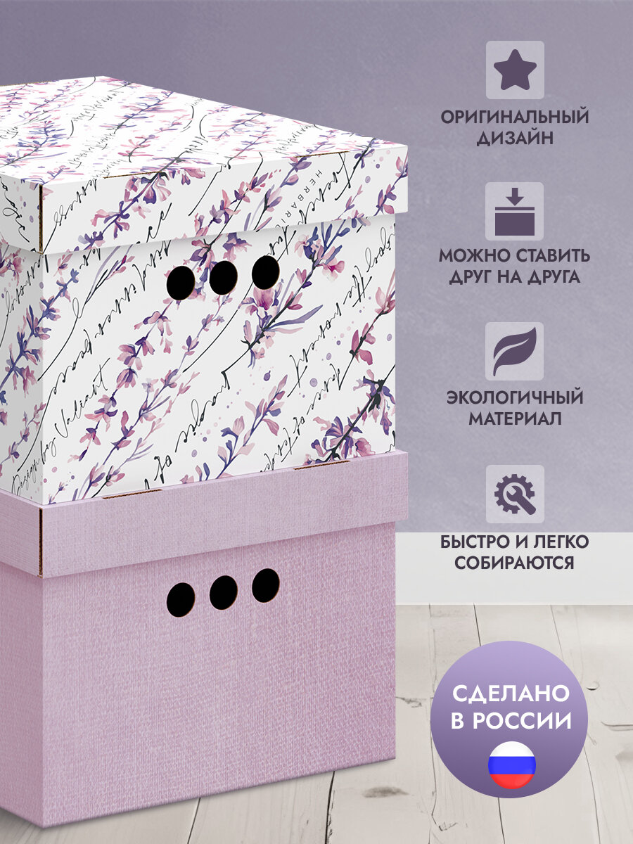 Коробки для хранения вещей, игрушек, обуви, картонные, короб для хранения с крышкой, 25*33*18,5 см набор 4 шт, HERBARIUM LAVENDER информация: