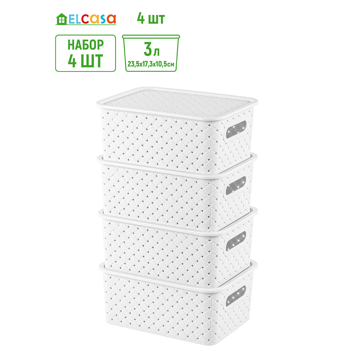 Отзывы на Корзинка, коробка для хранения, с крышкой 4 шт 3 л Береста EL Casa, 23,5х17,3х10,5 см, белый, набор