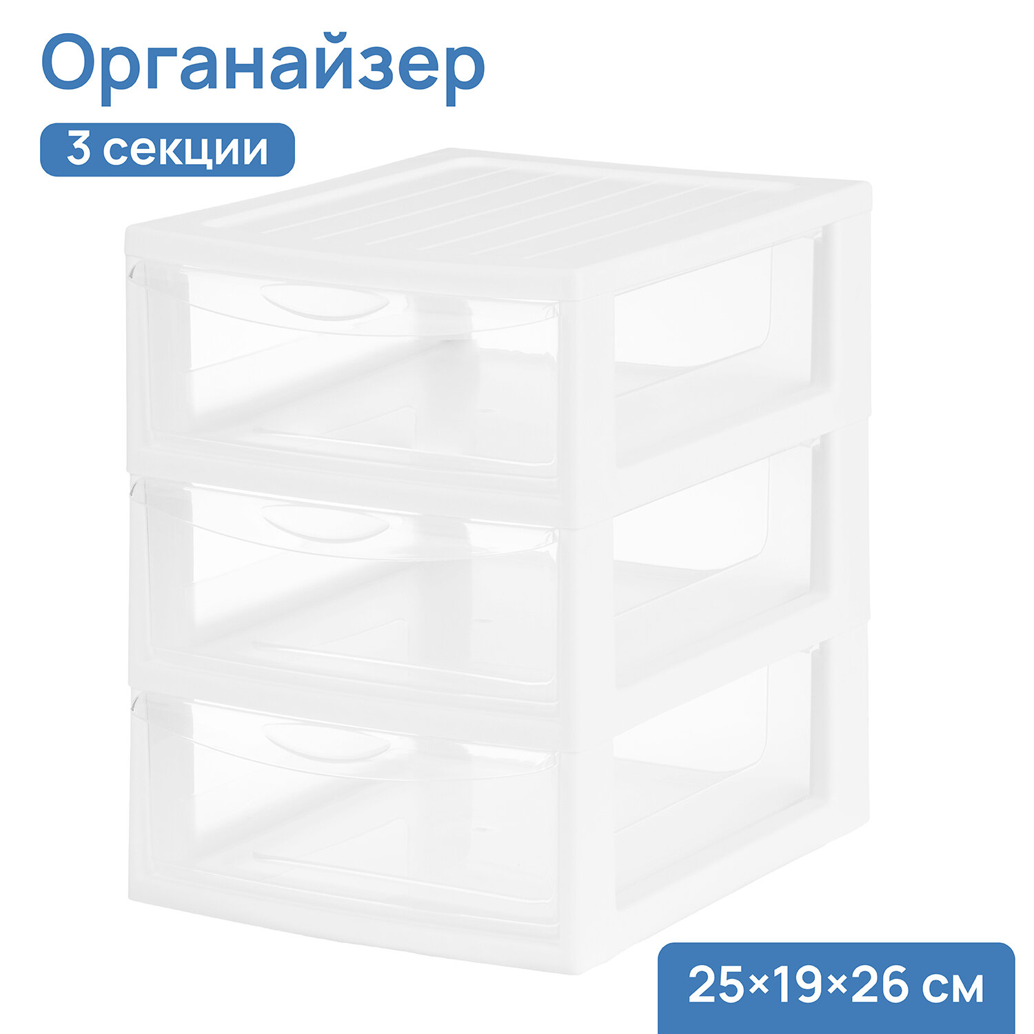Отзывы на Органайзер для ванной / для кухни / контейнер для хранения 3-х секционный El Casa 25*19,5*26 см, белый/прозрачный