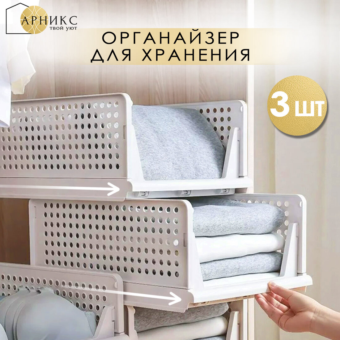 10 цен на Складной органайзер с выдвижными ящиками Арникс, 19 х 43 х 33 см, 3 шт. Цвет: белый