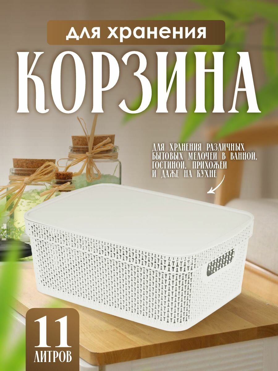 Корзина для хранения Keeplex Ajur с крышкой 5 л 28х18,5х14 см, (белое облако) 4113