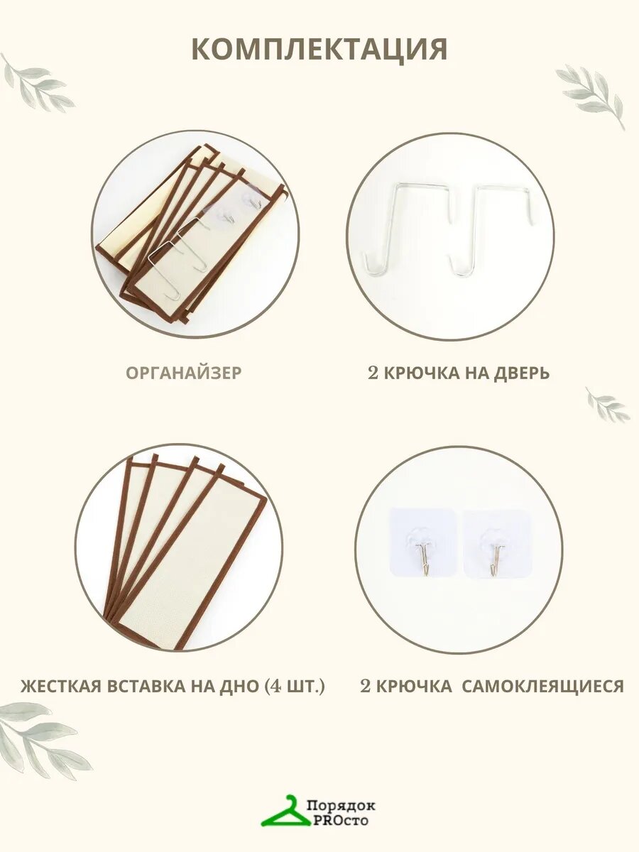 Органайзер Порядок PROсто, подвесной, для мелочей, с карманами, прямоугольный, бежевый/коричневый информация: