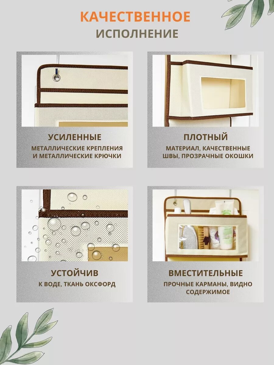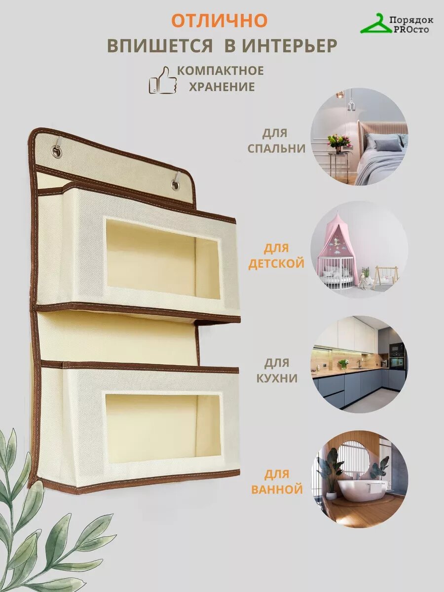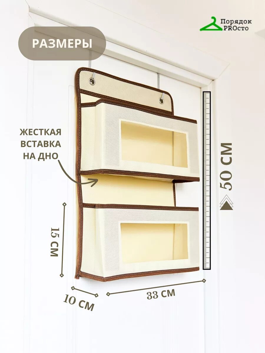 Органайзер Порядок PROсто, подвесной, для мелочей, с карманами, прямоугольный, бежевый/коричневый 1 550 ₽