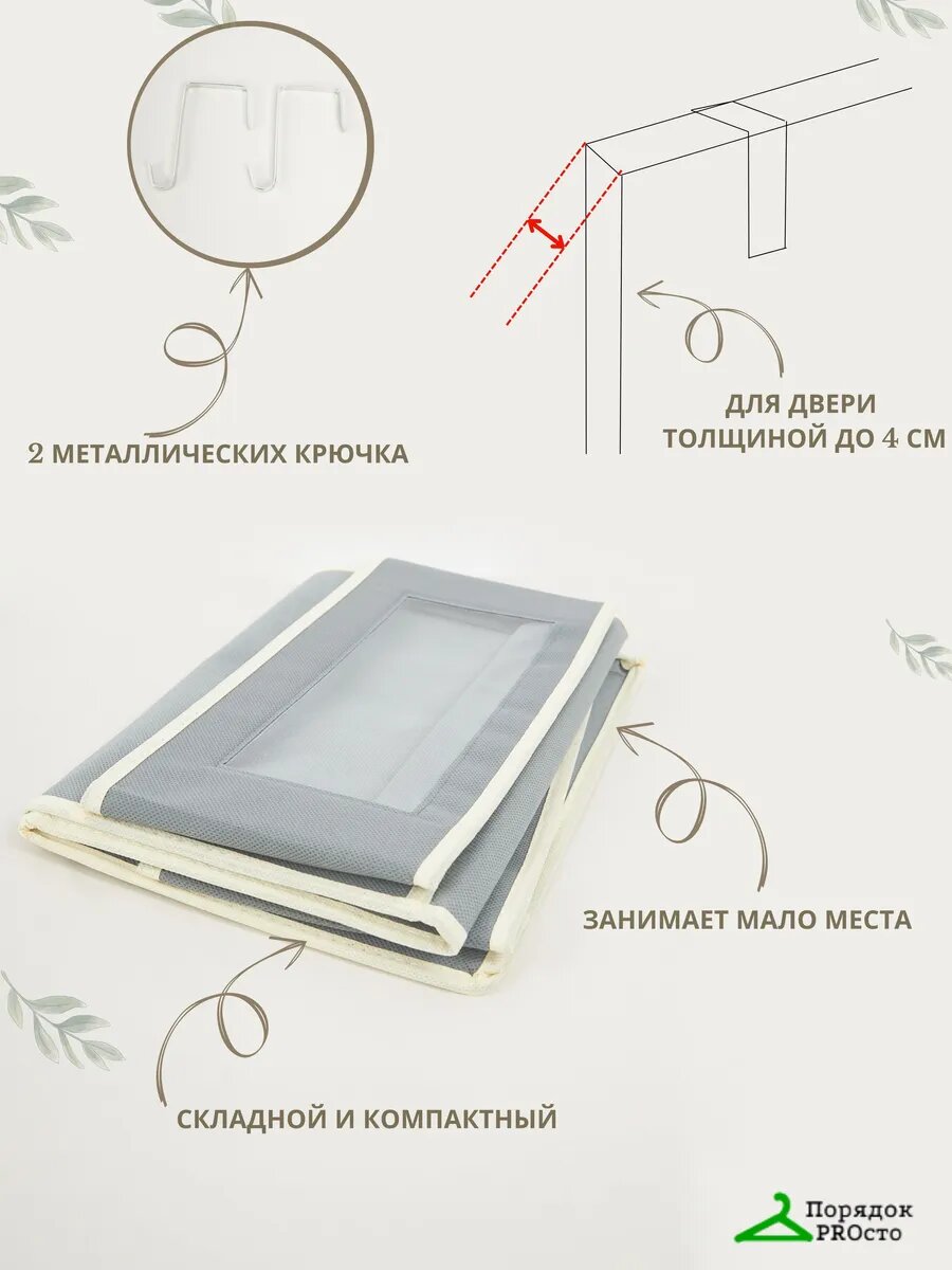 Органайзер Порядок PROсто, подвесной, 4 отделения, серый/бежевый информация:
