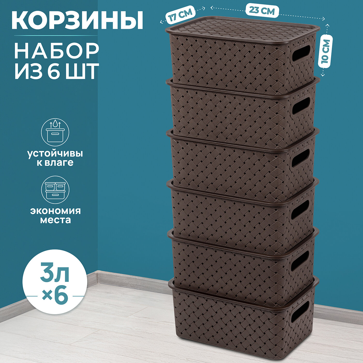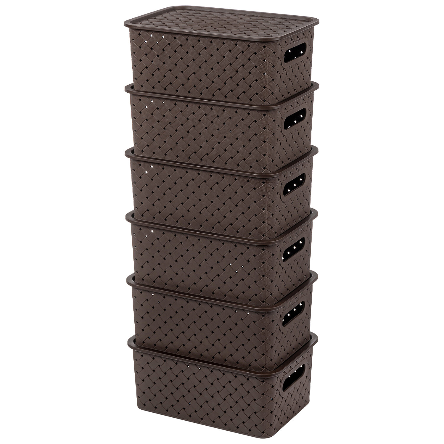 Корзинка, коробка для хранения, с крышкой 6 шт Береста 3 л EL Casa, цвет темно-коричневый, набор