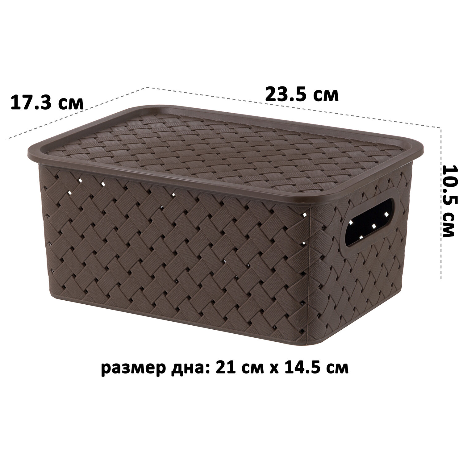 Корзинка, коробка для хранения, с крышкой 6 шт Береста 3 л EL Casa, цвет темно-коричневый, набор информация: