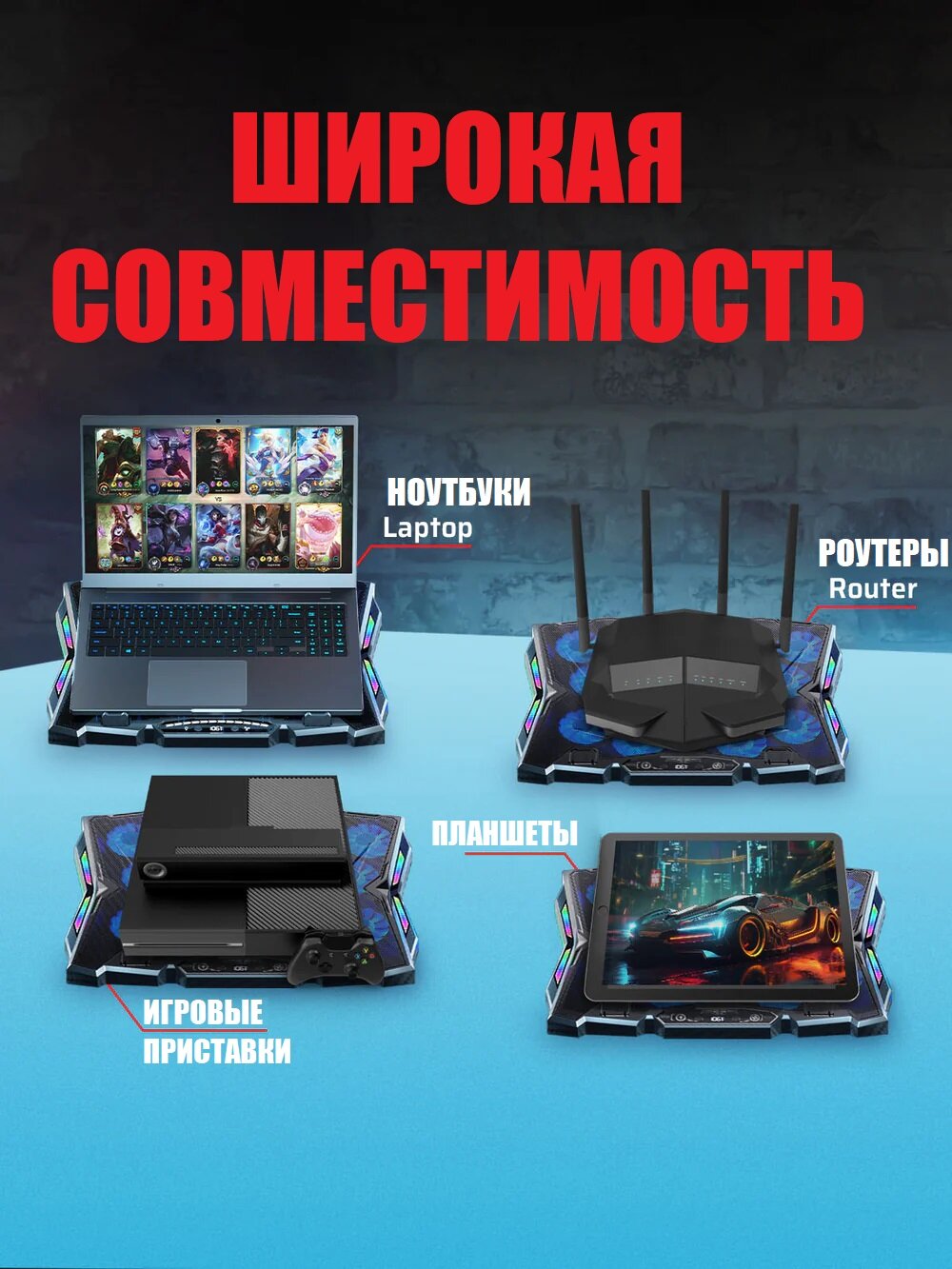 10 цен на Охлаждающая подставка для ноутбука до 18", 15 вентиляторов RGB c подставкой для смартфона
