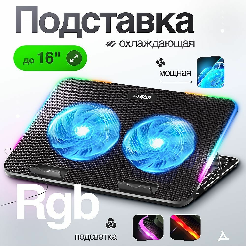 10 цен на Охлаждающая подставка для ноутбука STEAR FX-300 Samui с 2 вентиляторами и RGB-подсветкой, на стол, до 16" (15.6", 14")