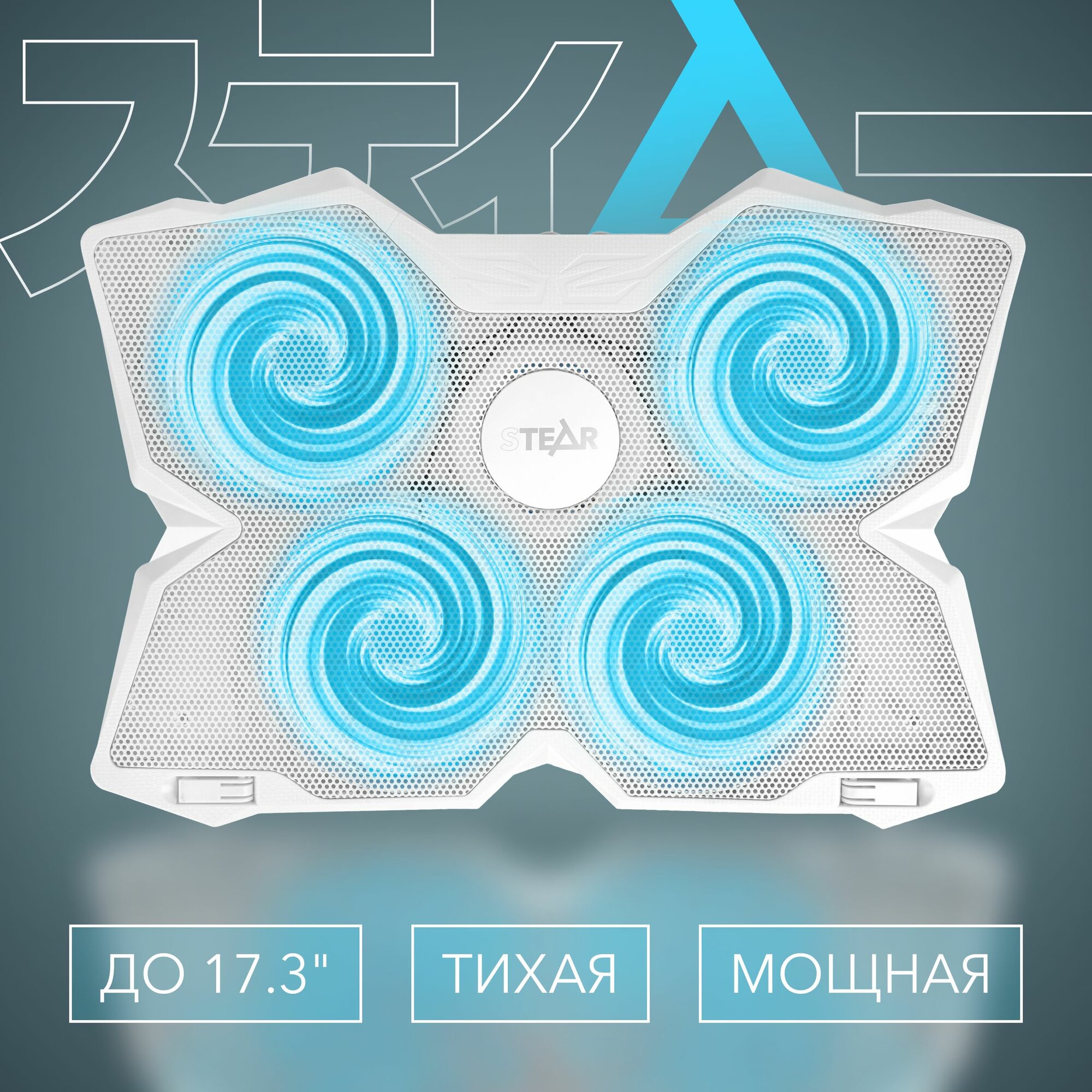 10 цен на Охлаждающая подставка для ноутбука STEAR FX-500-3 Arashi с 4 вентиляторами и подсветкой, белая, до 17.3" (16, 15.6", 14)