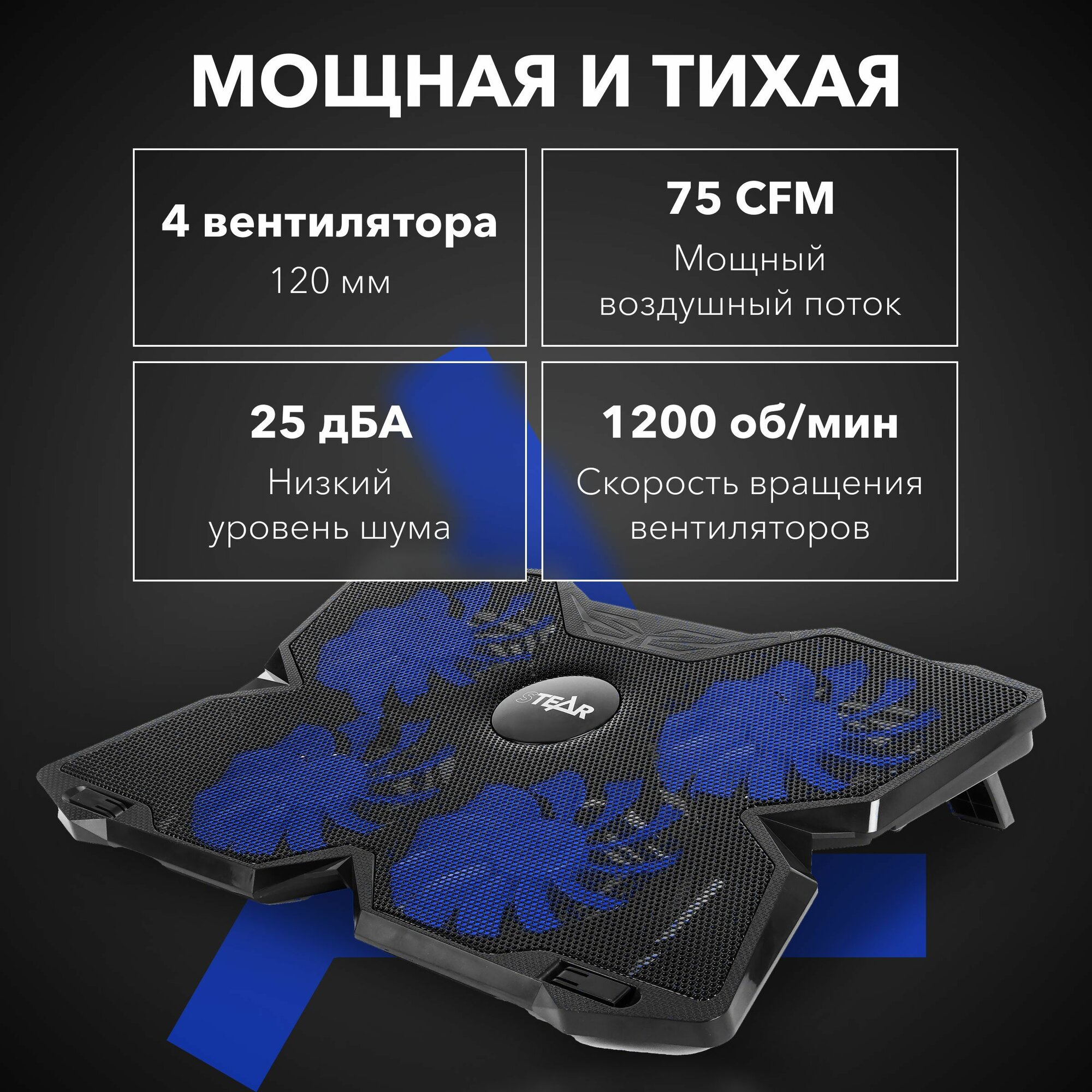 Отзывы на Охлаждающая подставка для ноутбука STEAR FX-500-2 Arashi с 4 вентиляторами и подсветкой, до 17.3" (16", 15.6", 14")
