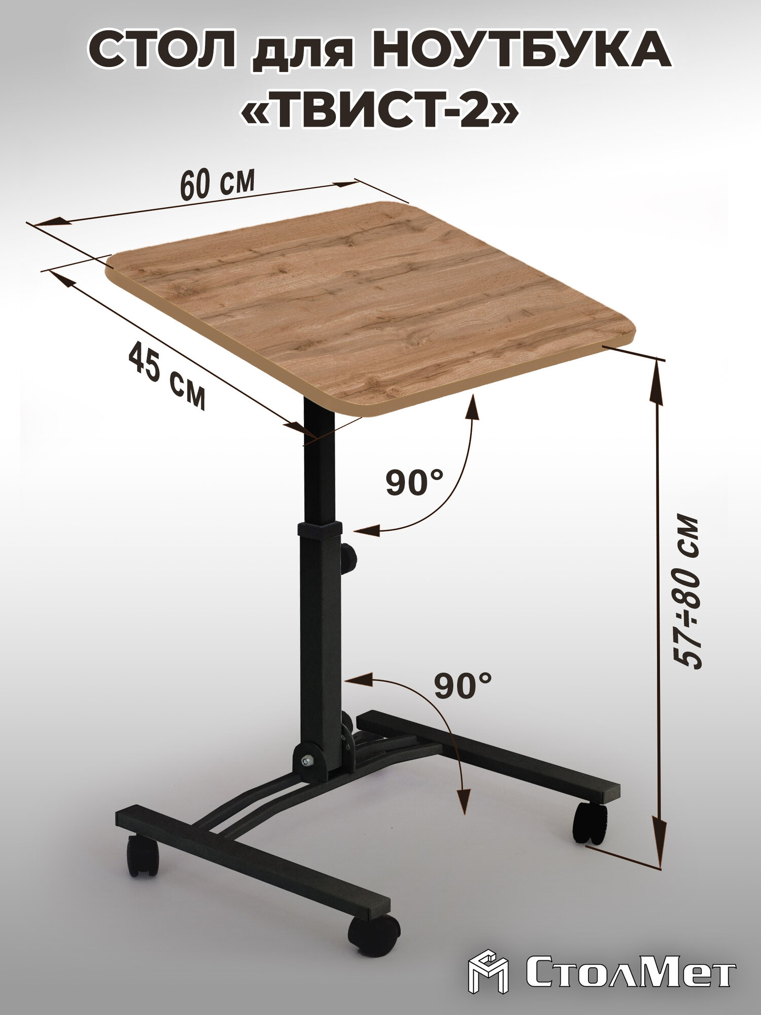 Складной стол для ноутбука на колесах «Твист-2» с регулировкой высоты и угла наклона, дуб делано, черный информация: