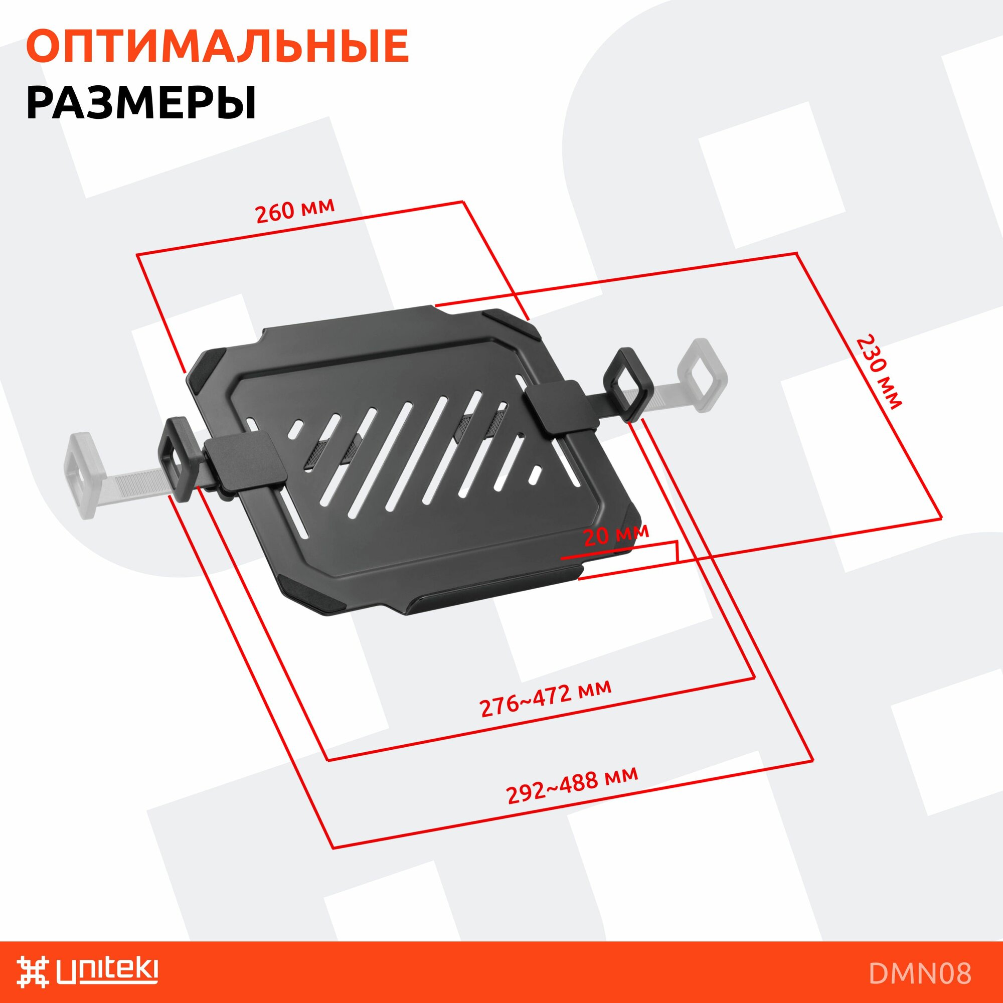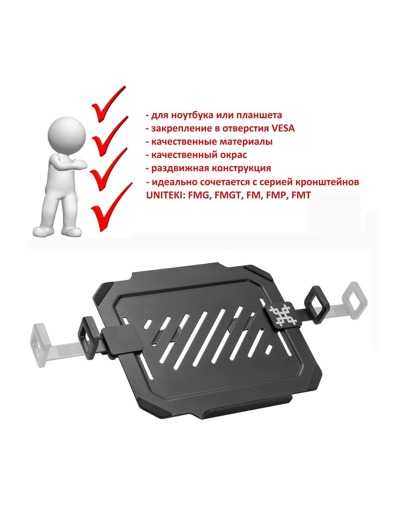 Полка подставка крепление VESA для ноутбука или планшета раздвижная, на кронштейн VESA, диагональ 13-17 дюймов UNITEKI DMN08 черный информация: