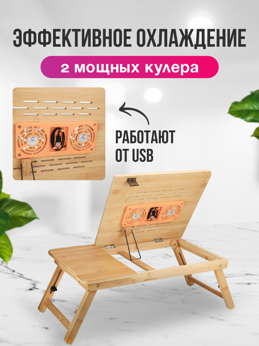 10 цен на Подставка для ноутбука с охлаждением, размер 55х32.5 см, 2 вентилятора, с диагональю от 30 до 44см. Сделано из бамбука.
