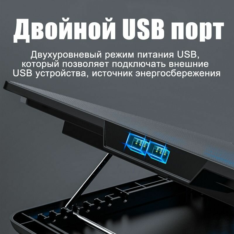 Регулируемая охлаждающая подставка для ноутбуков, 2 вентилятора, подсветка, 5 углов наклона, держатель для смартфона, 2 USB , для экрана 13"-19"
