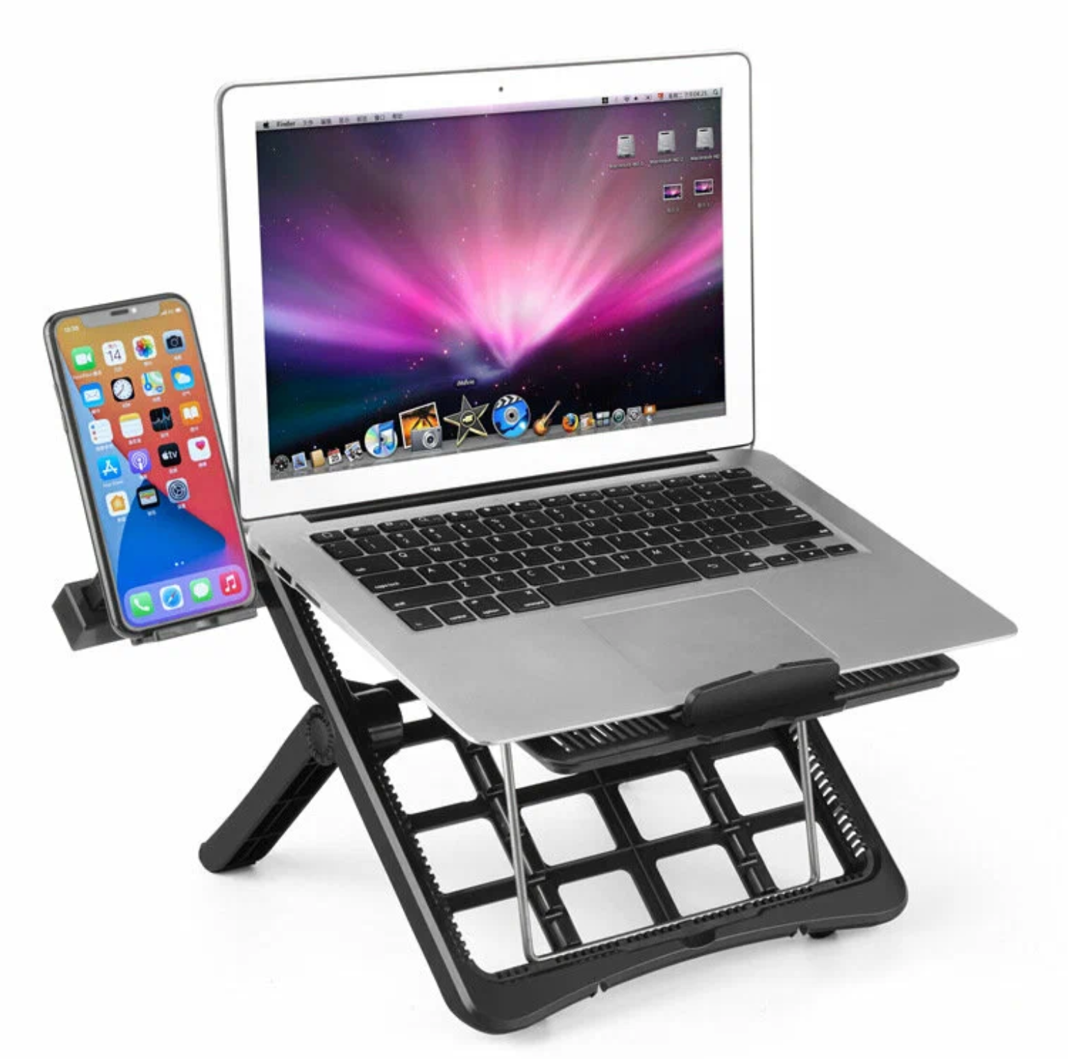 Регулируемая складная подставка для ноутбука с держателем для телефона