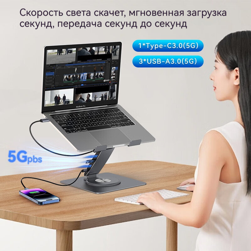 Отзывы на Подставка для ноутбука Han Zichen PCR100B, поворотная и подъемная, [5-портовая версия расширения/апгрейда] PCR100B