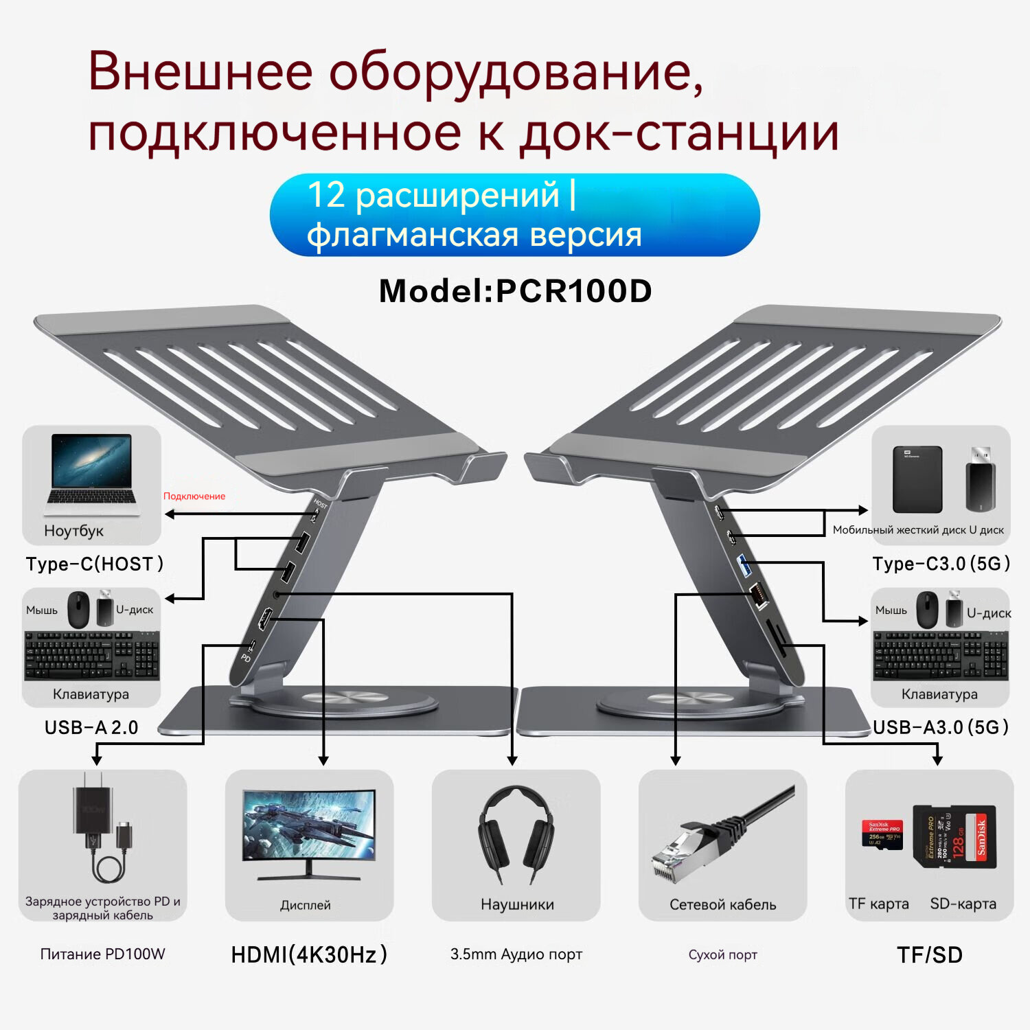 Подставка для ноутбука Han Zichen PCR100D, поворотная и подъемная, [12-портовое расширение/ultimate edition] PCR100D информация: