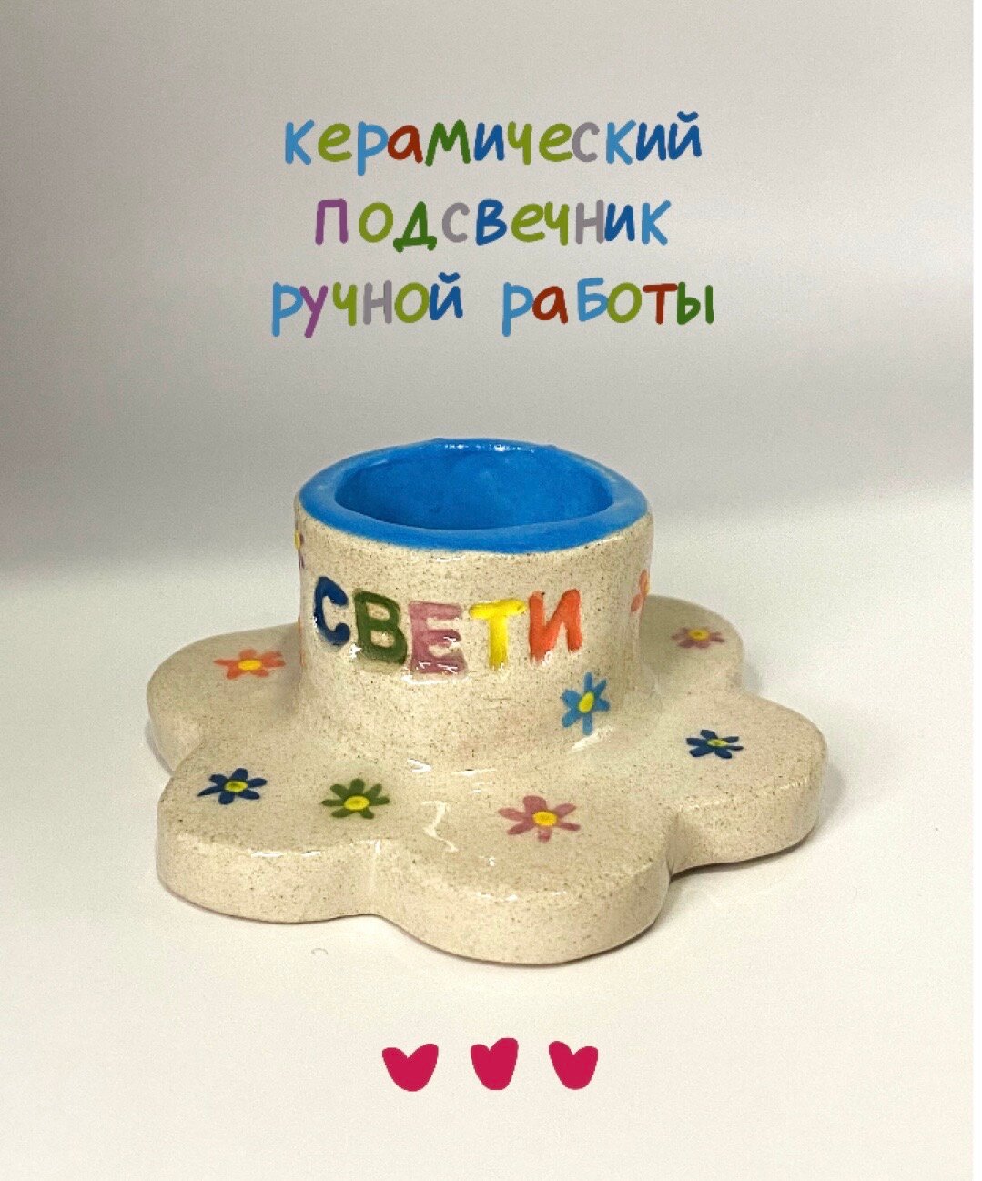 Керамический подсвечник " СВЕТИ " подарок ручной работы для свечей, для дома, для уюта в форме цветка информация: