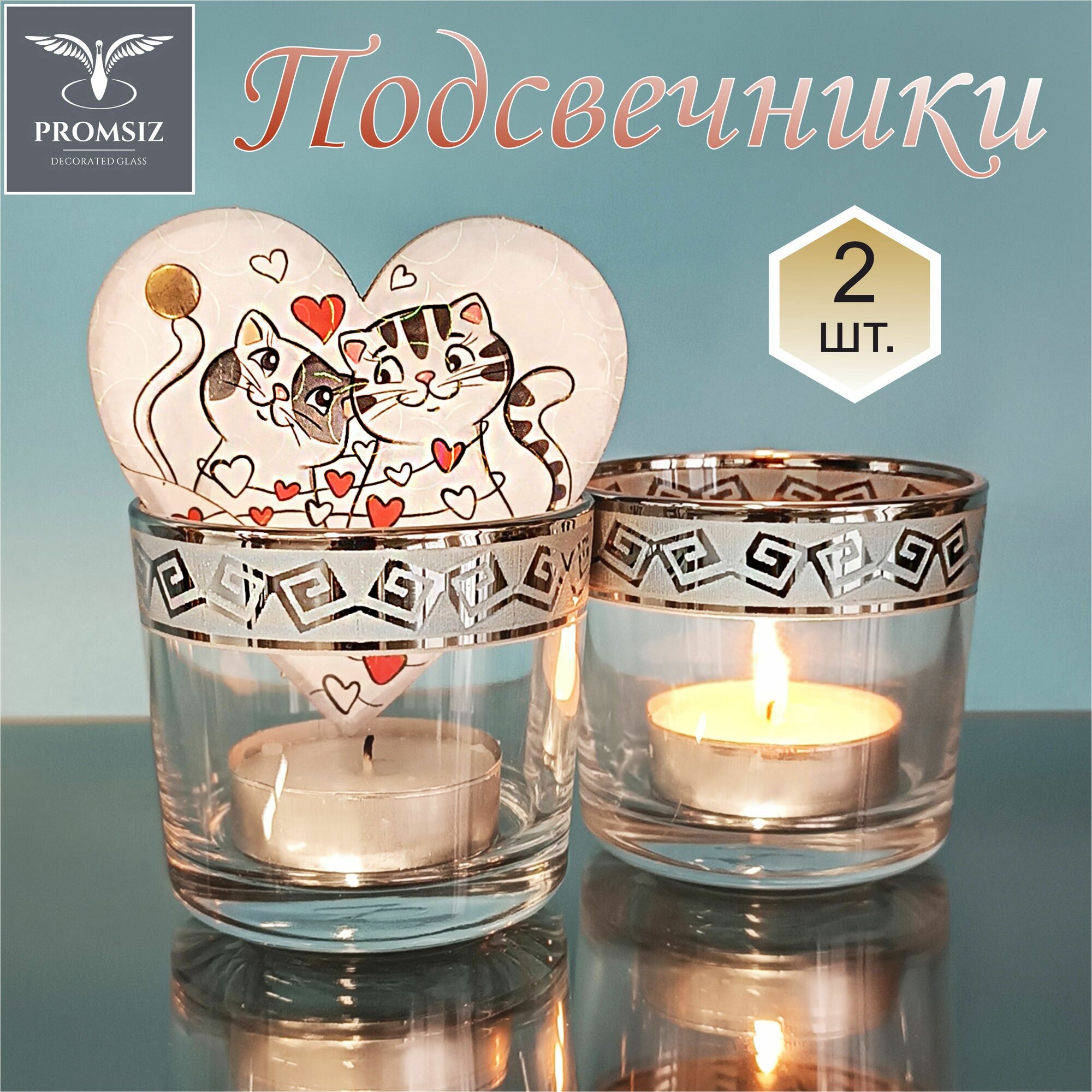 Отзывы на Подарочный набор стеклянных подсвечников PROMSIZ афина серебро, 2 шт.