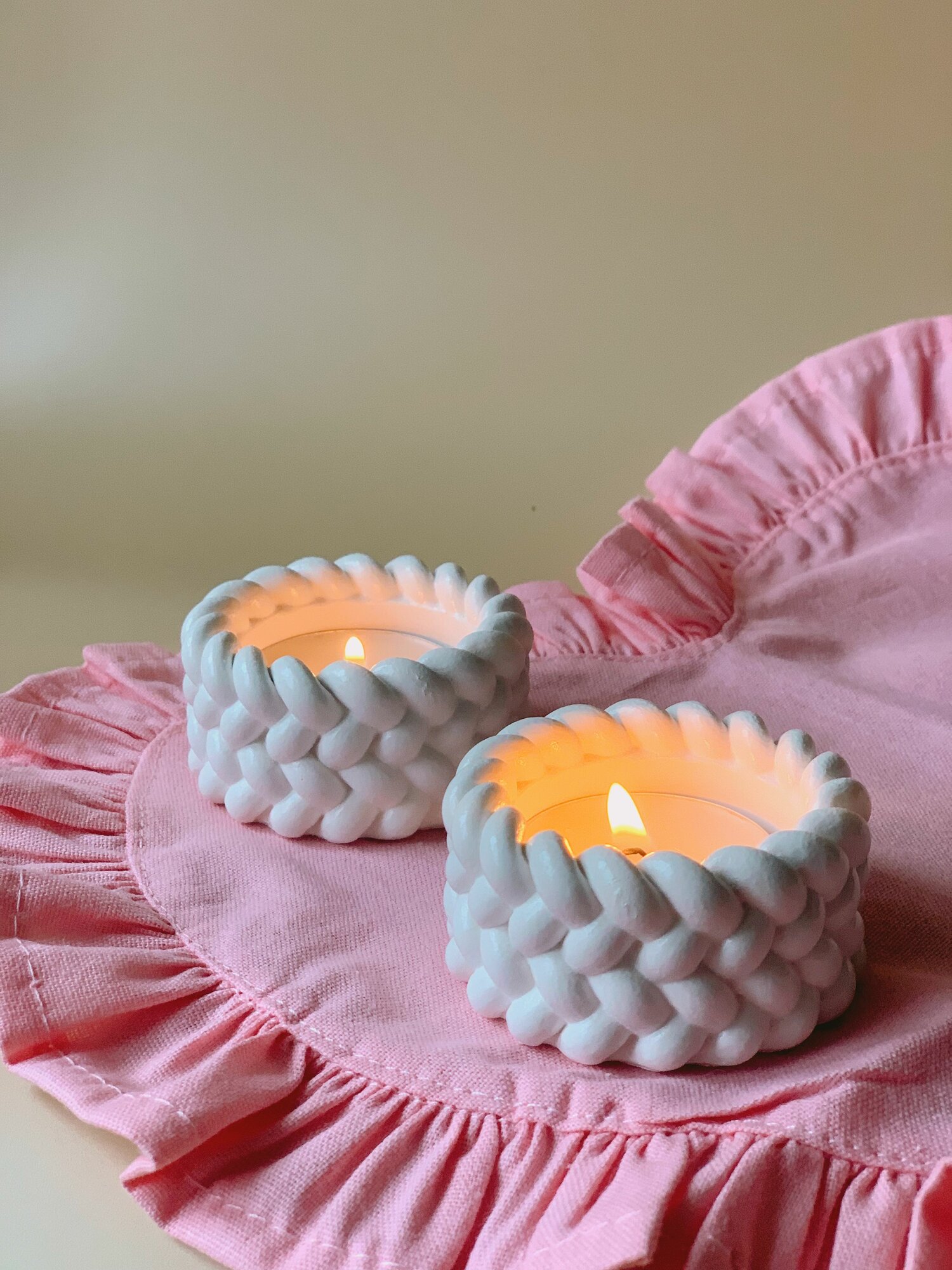 Подсвечник Вязаный для чайной свечи из гипса, 4 шт. / подсвечники информация: