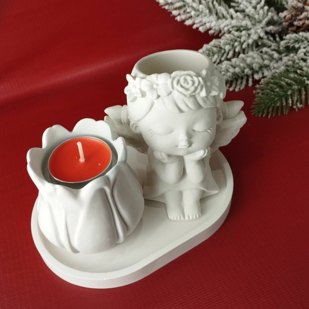 Подсвечник и ангел-кашпо с подставкой набор из гипса информация: