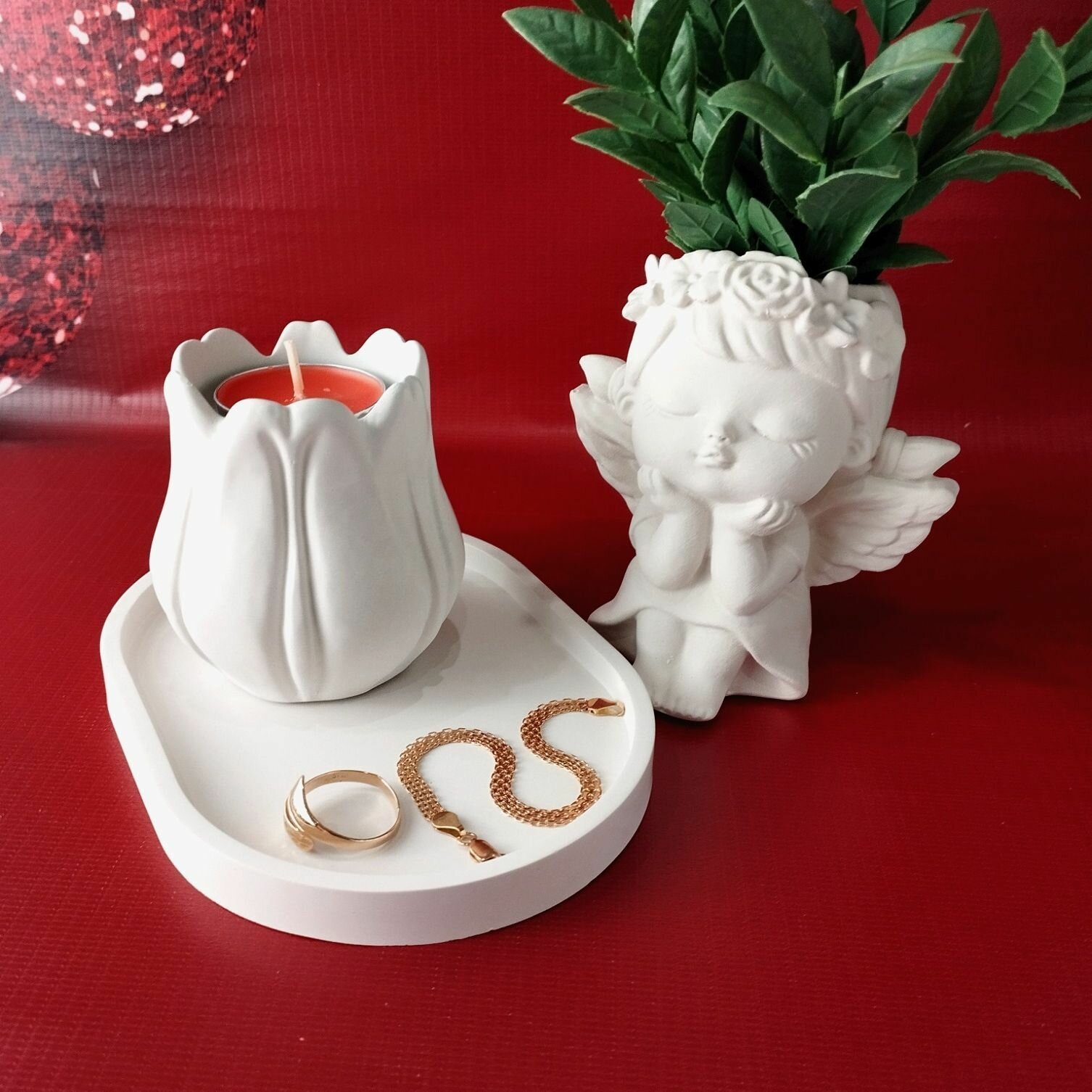 10 цен на Подсвечник и ангел-кашпо с подставкой набор из гипса