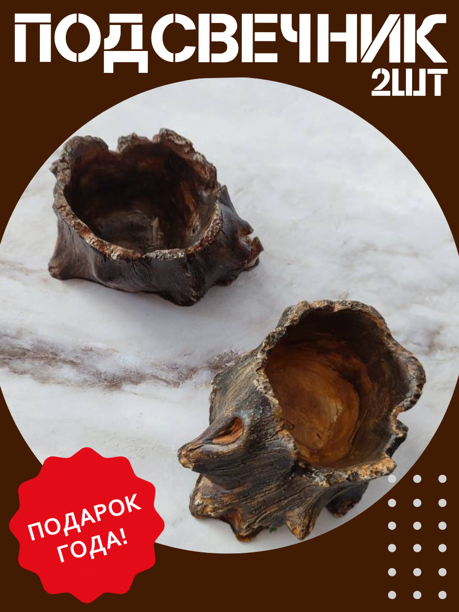 10 цен на Подсвечники "Пень" из гипса под заливку воском, ручная работа 2 шт.