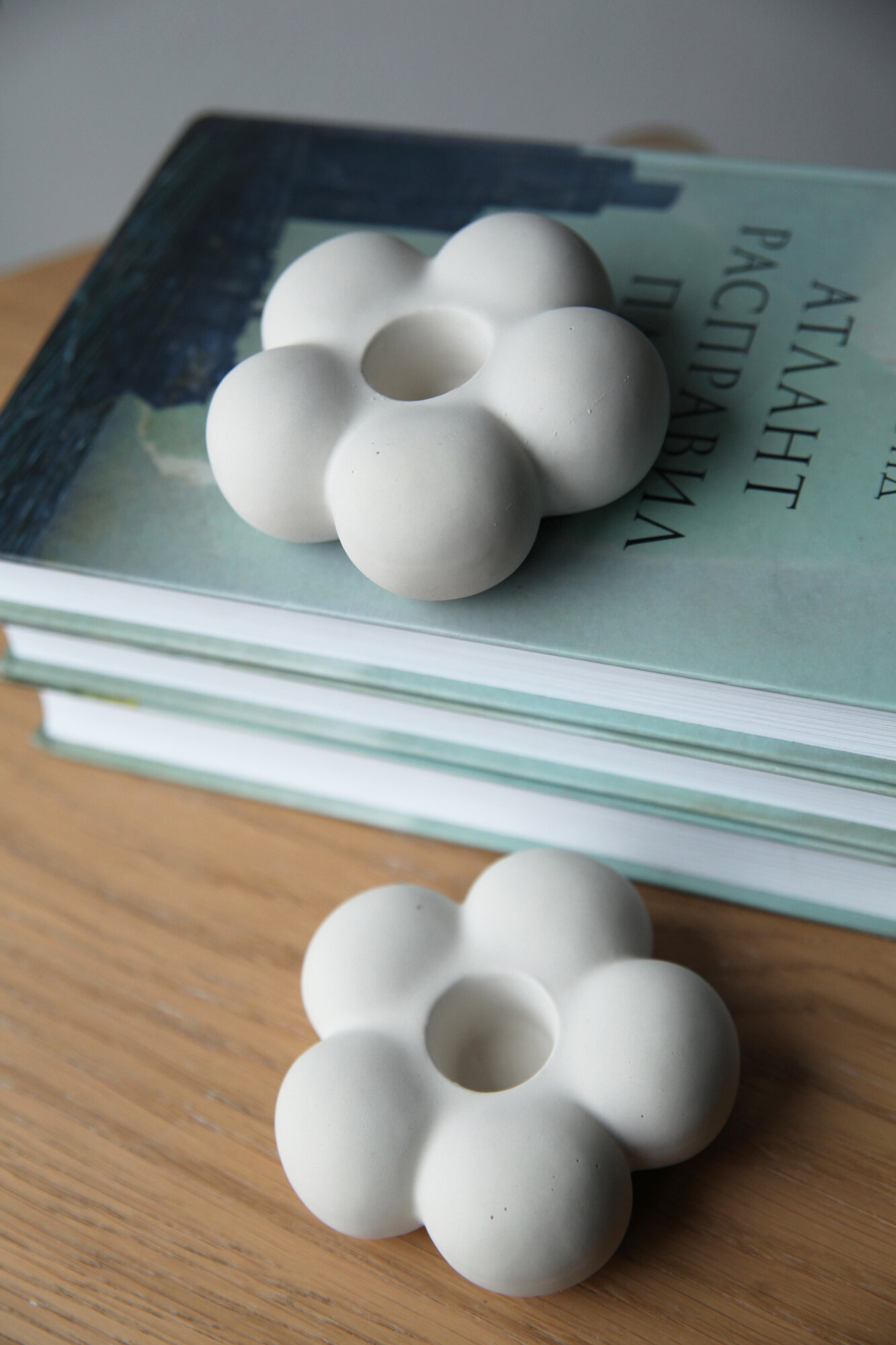 Комплект подсвечников ZAVOD BETON "Цветы", бетон/гипс, белый, 3×8×8 см информация: