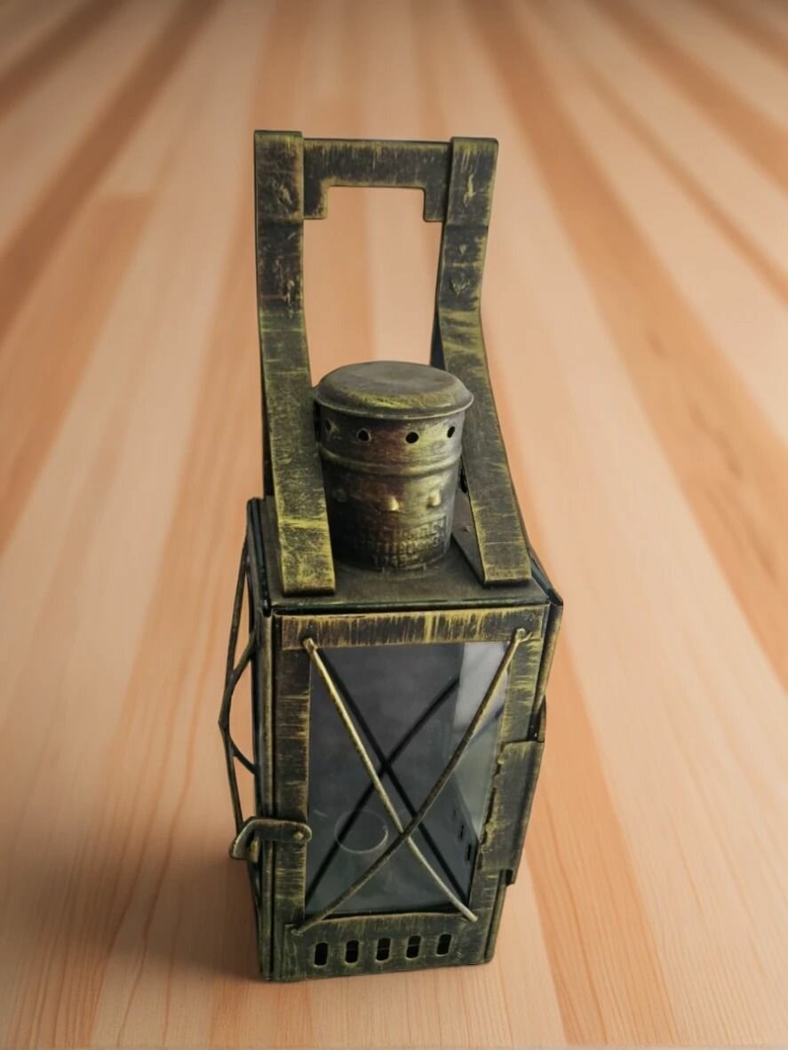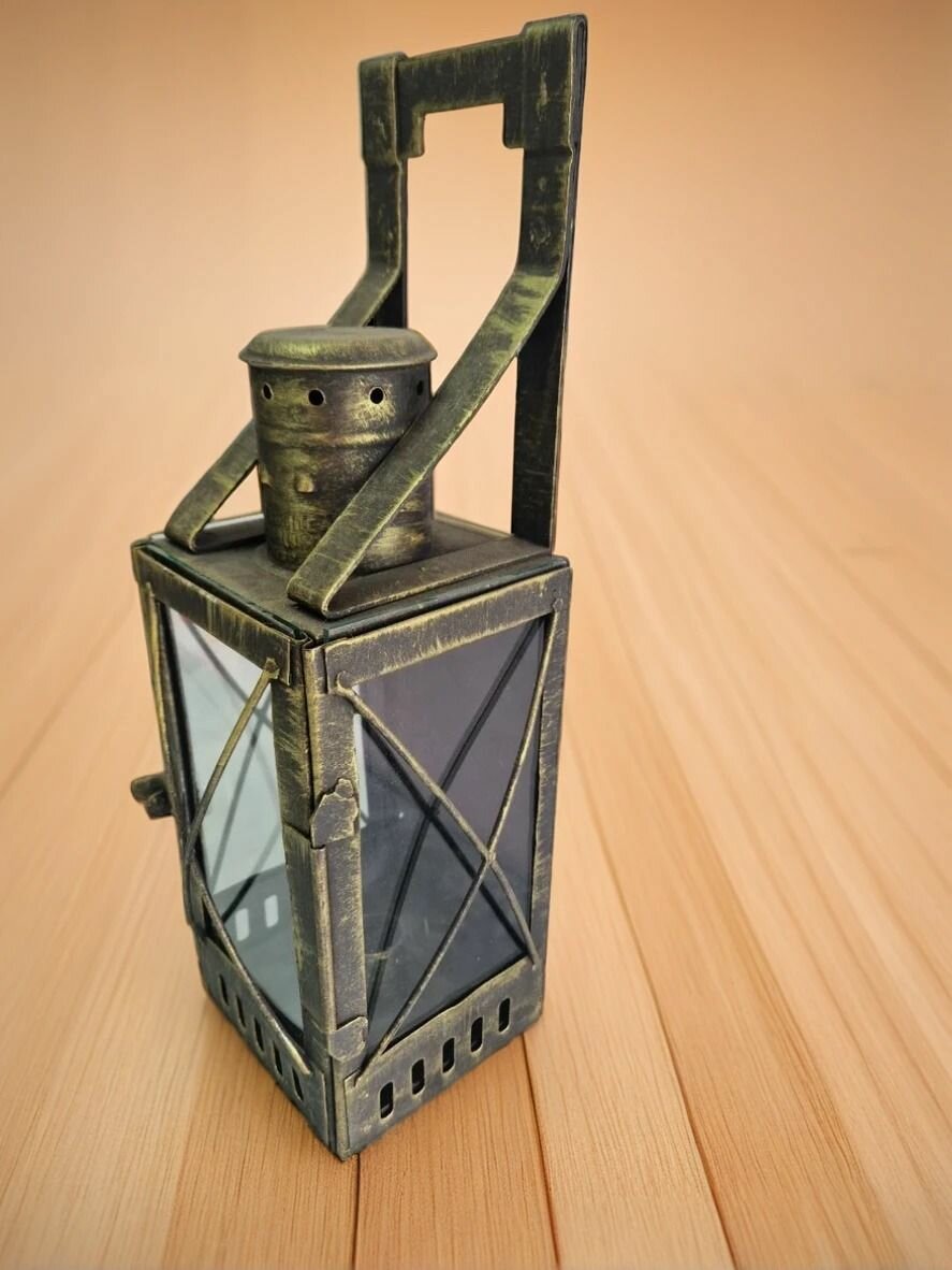 Подсвечник фонарь металлический "Железнодорожный" / Четырёхугольный, золотой фонарь отполированный информация: