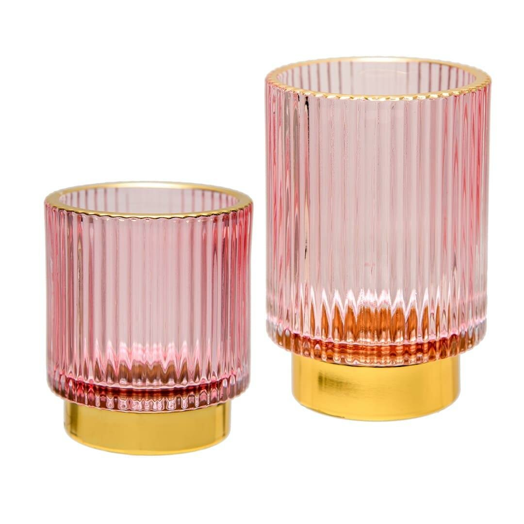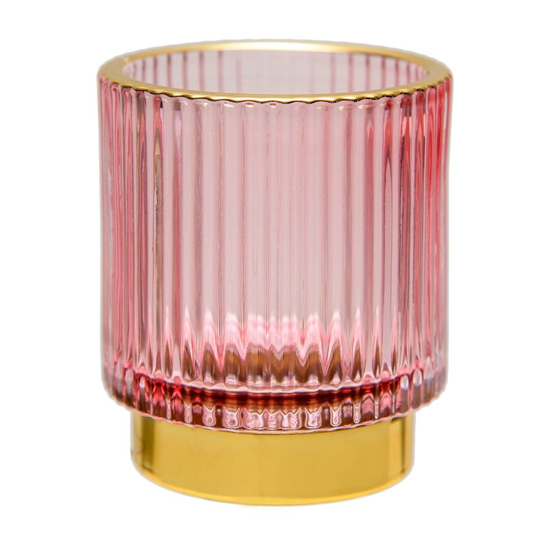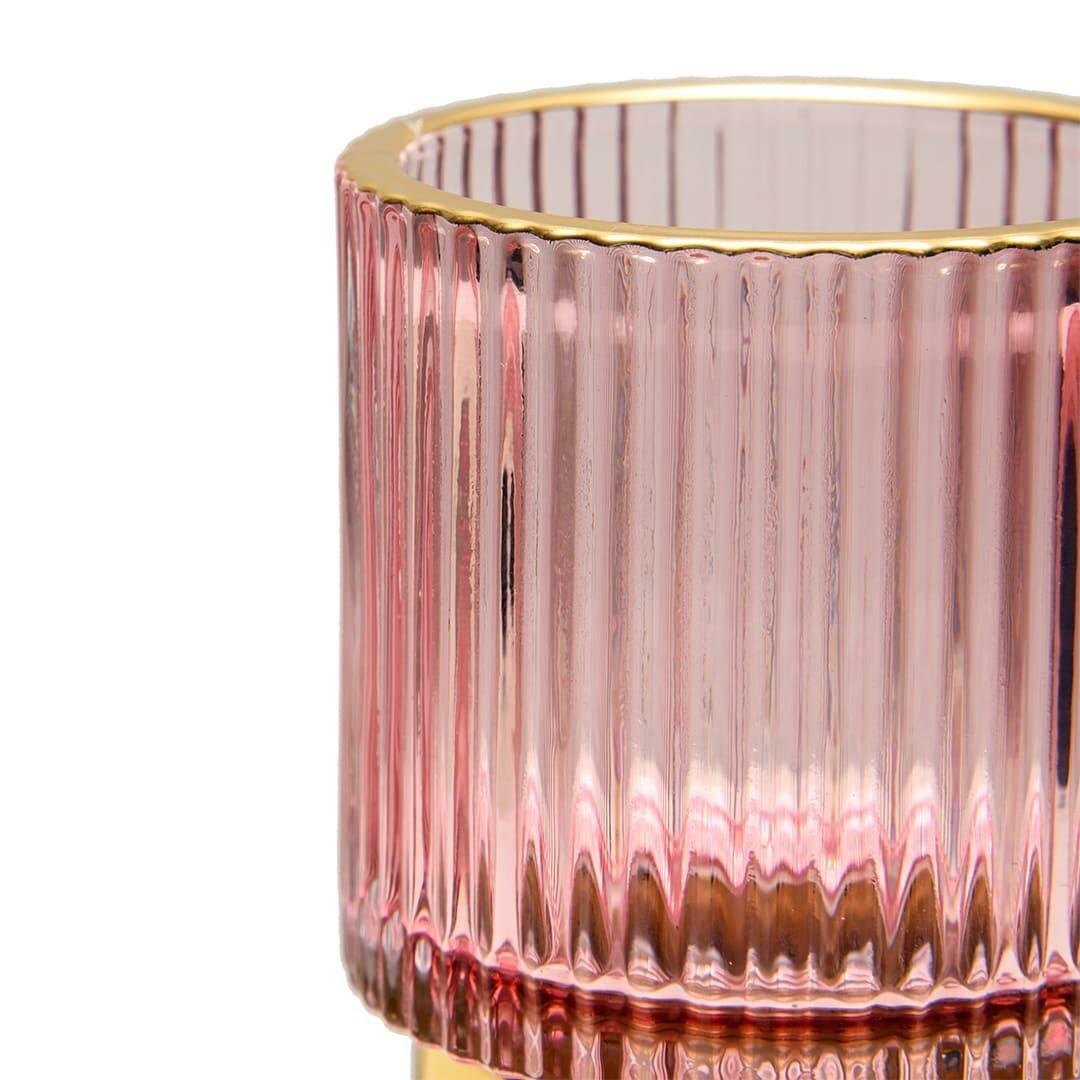Подсвечник декоративный Вещицы из цветного стекла 13 см / Для декора свечей / Цвет розовый, золотой 1 153 ₽