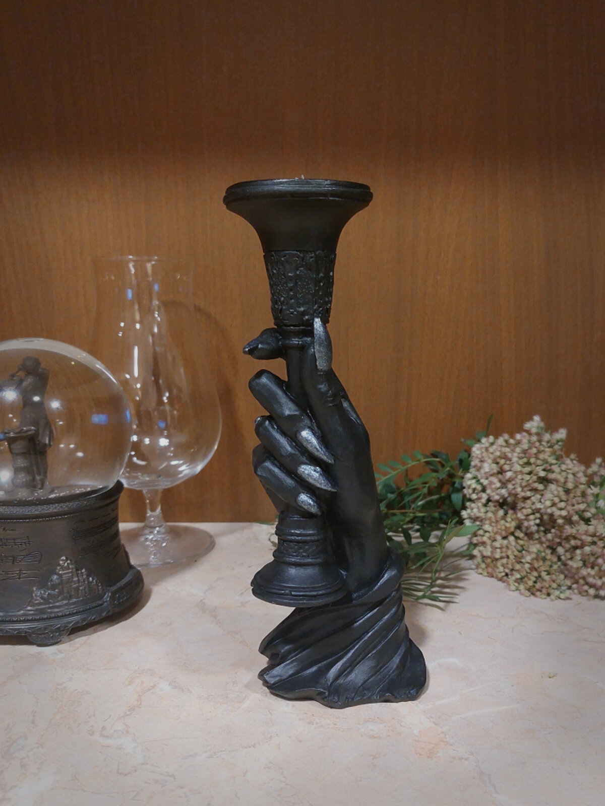 Декоративная черная статуэтка - подсвечник из гипса "Рука ведьмы" информация: