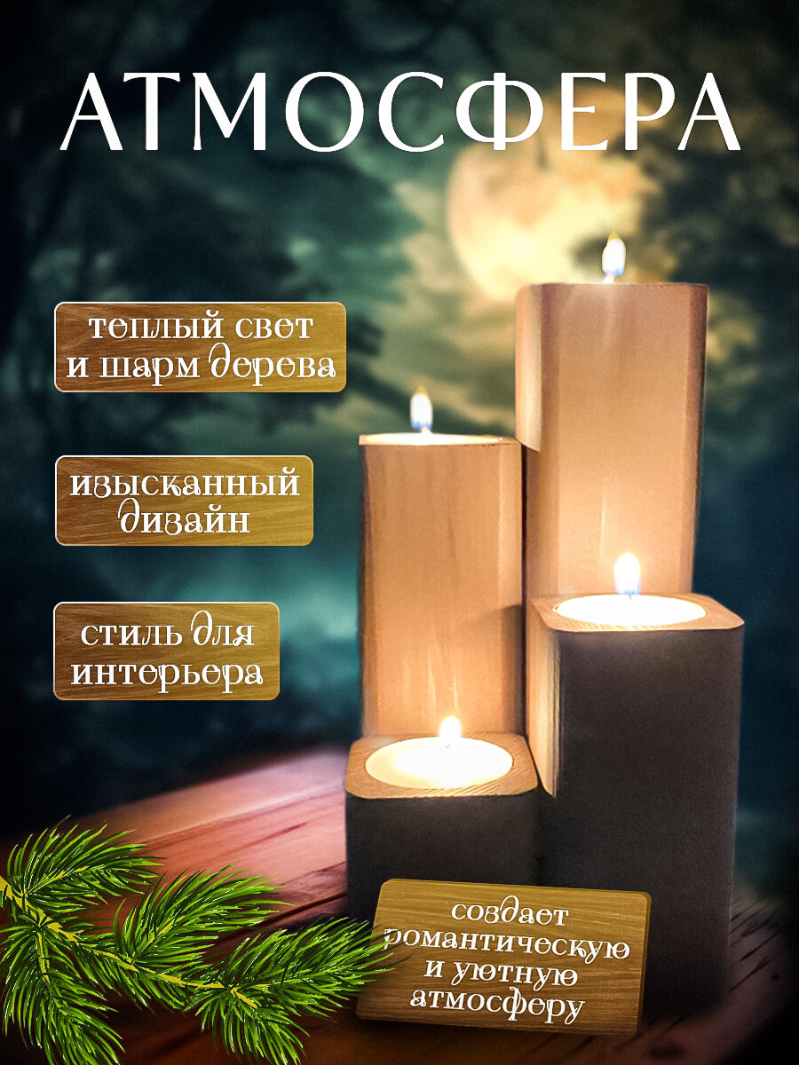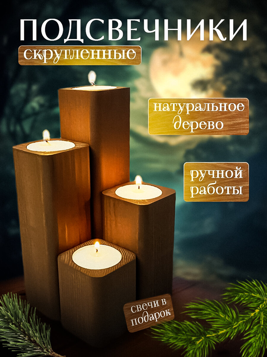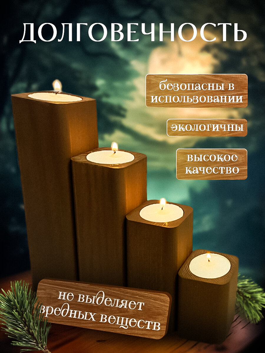 10 цен на Набор подсвечников для чайной свечи, дерево, сосна, 4 шт