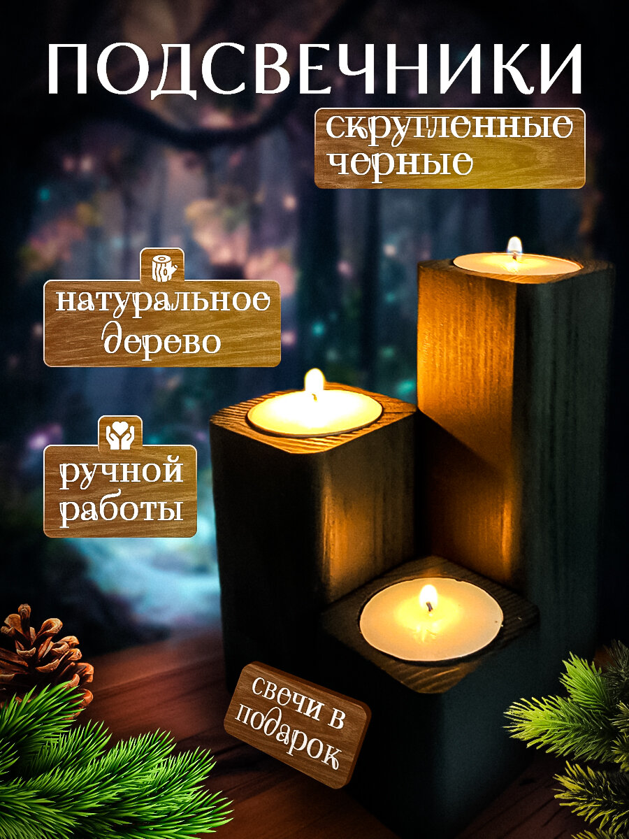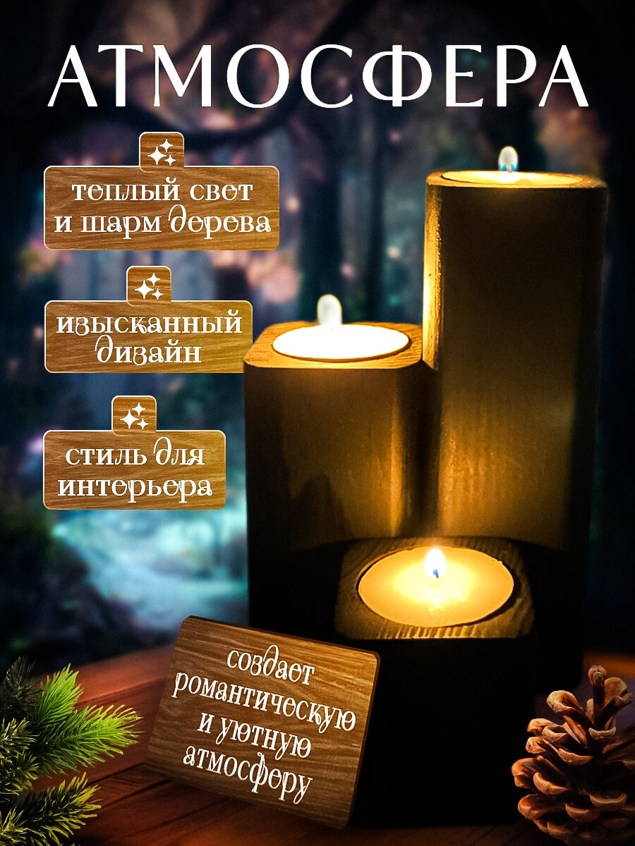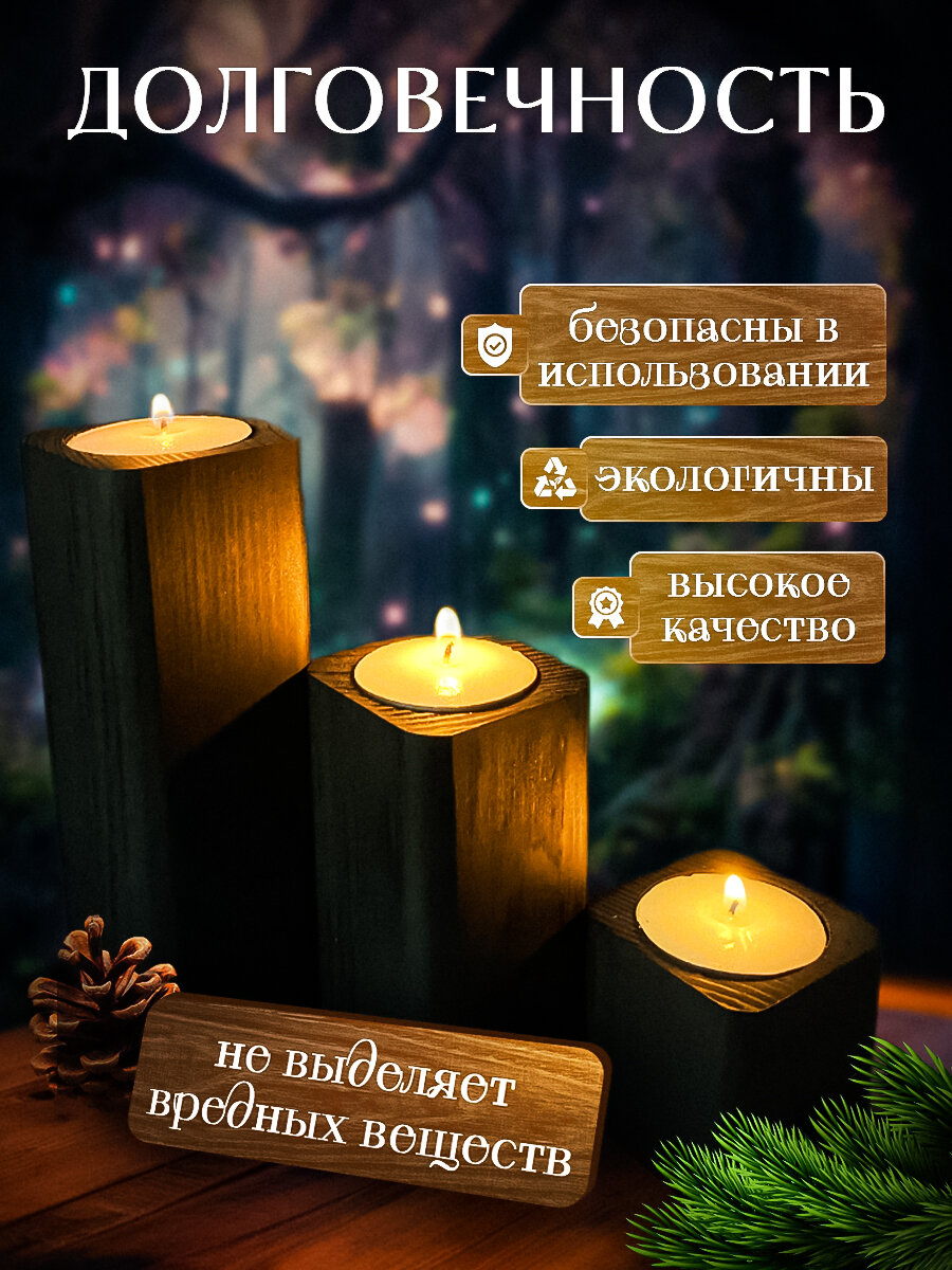10 цен на Набор подсвечников для чайной свечи, дерево, сосна, 3 шт