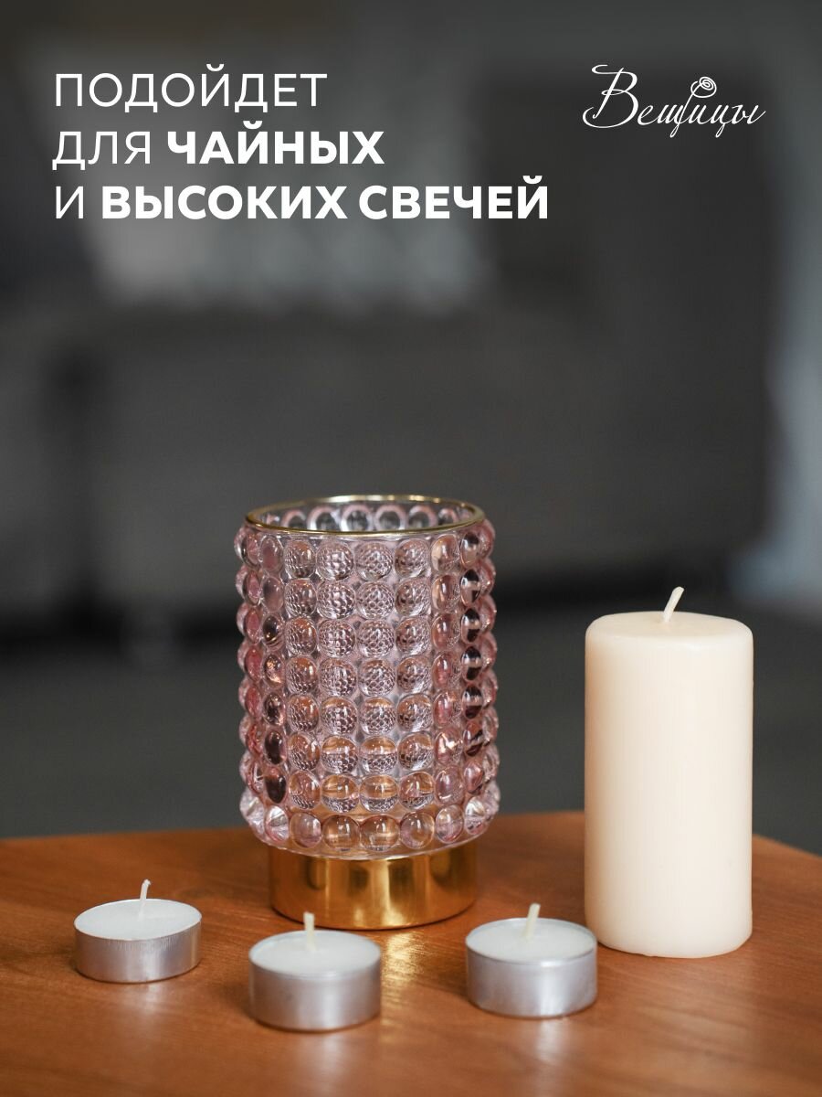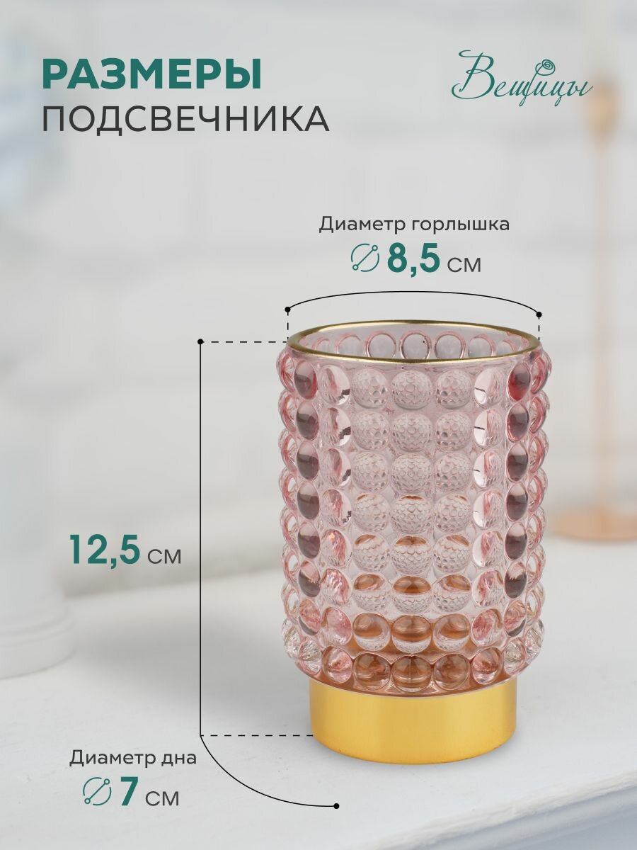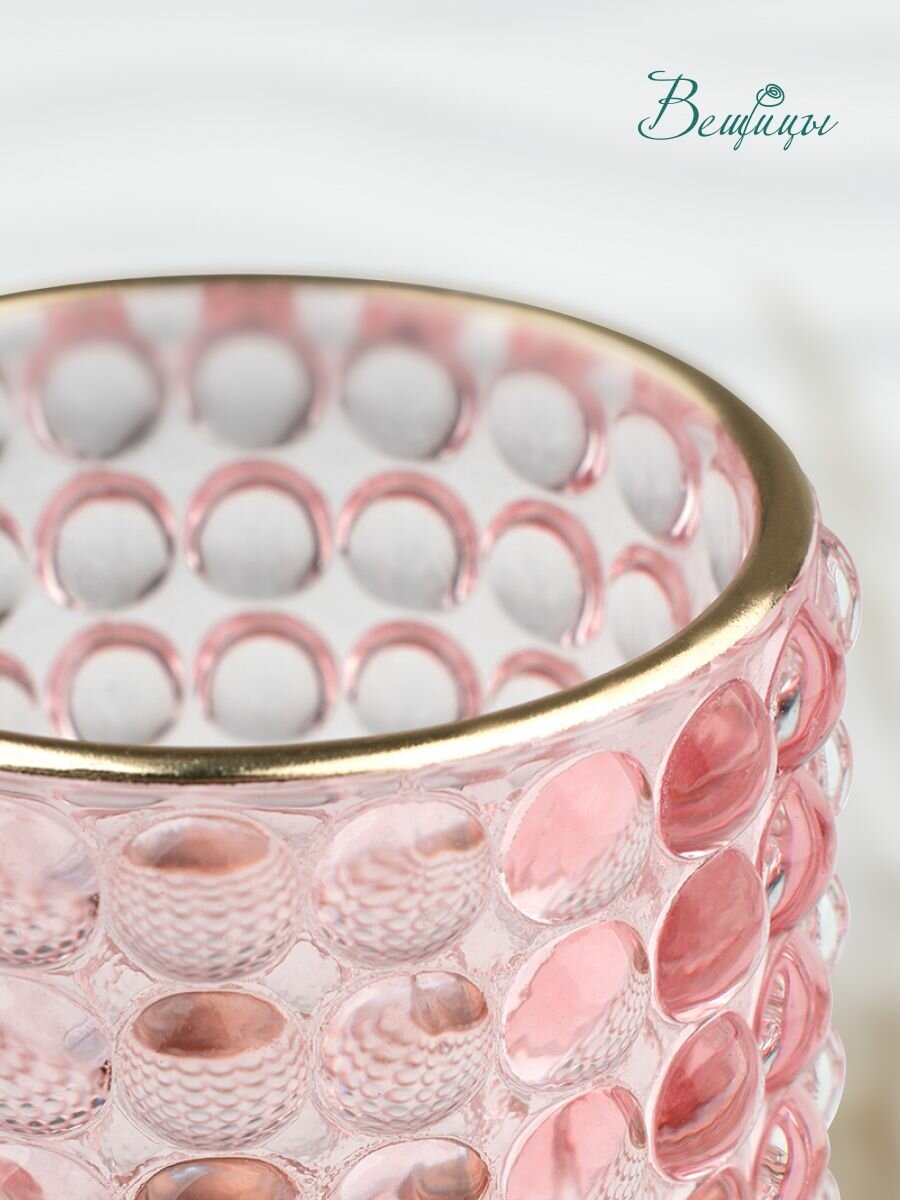 Подсвечник декоративный Вещицы из цветного стекла 12,5 см / Для декора и свечей / Цвет розовый, золотой информация:
