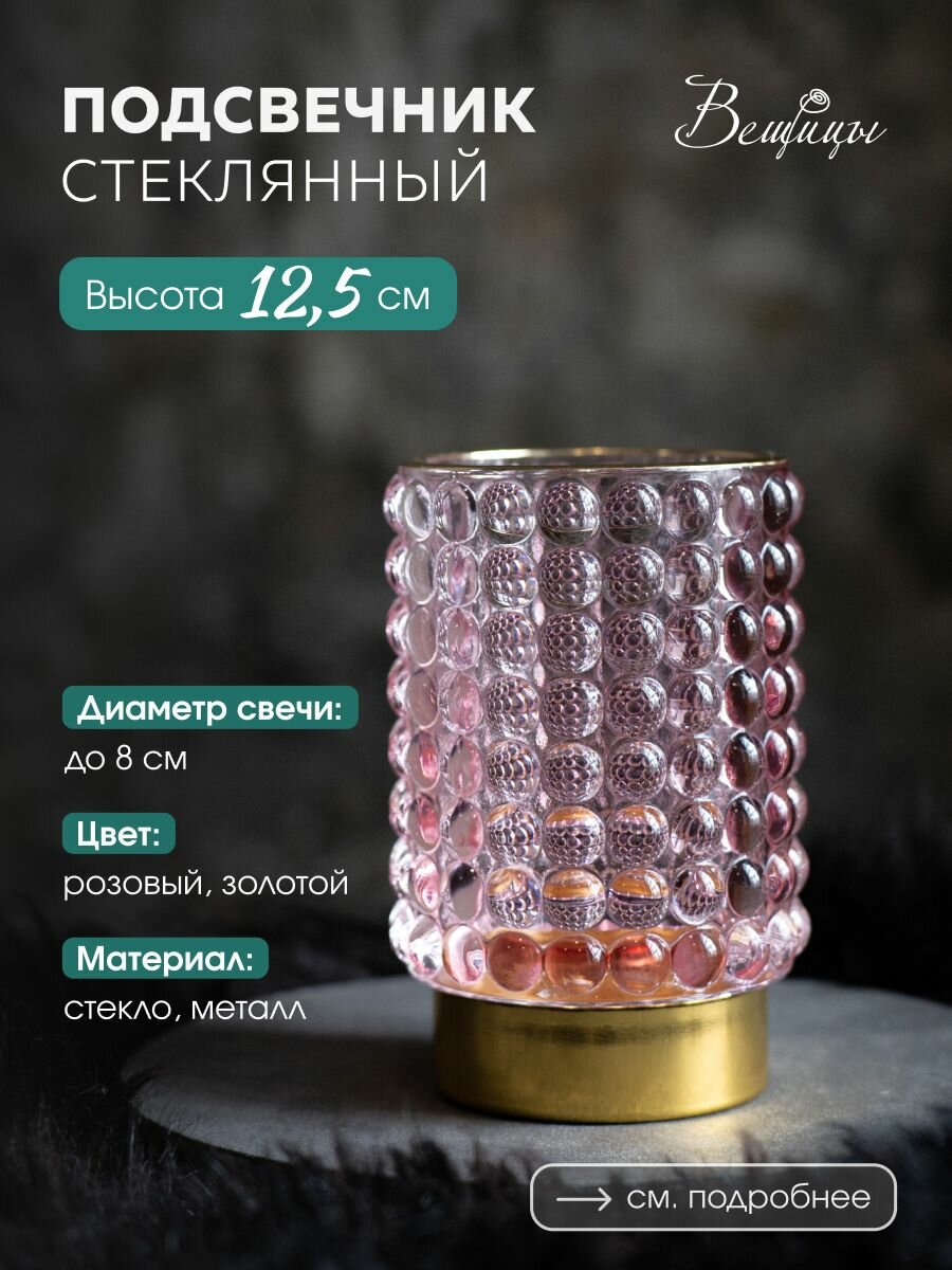 10 цен на Подсвечник декоративный Вещицы из цветного стекла 12,5 см / Для декора и свечей / Цвет розовый, золотой